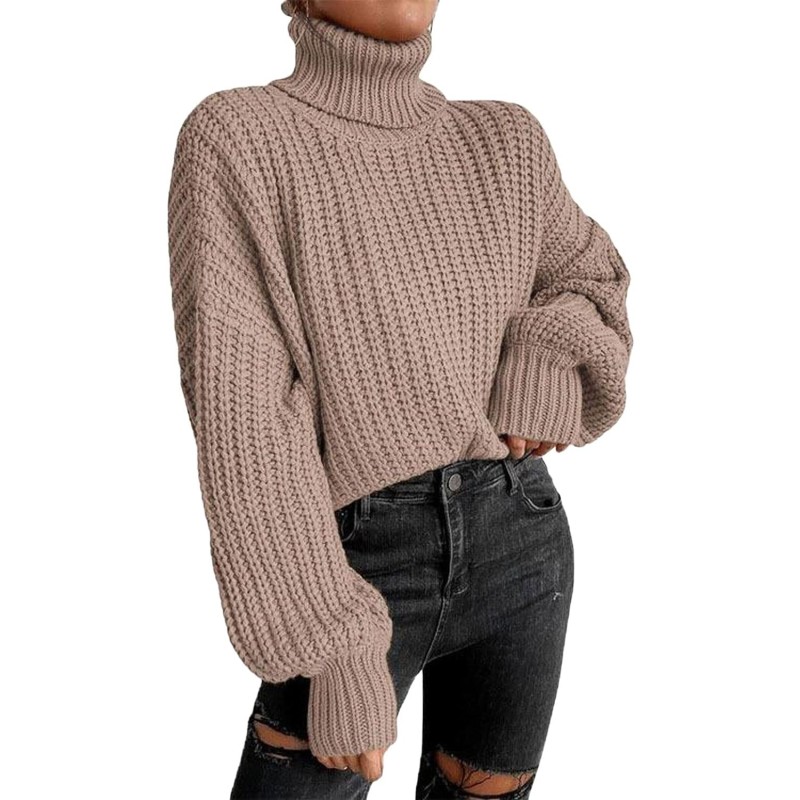 CHARTOU Women Oversized Cable Knit Turtleneck Sweater Long Sleeve Drop Shoulder Knitwear Pullover(Khaki)