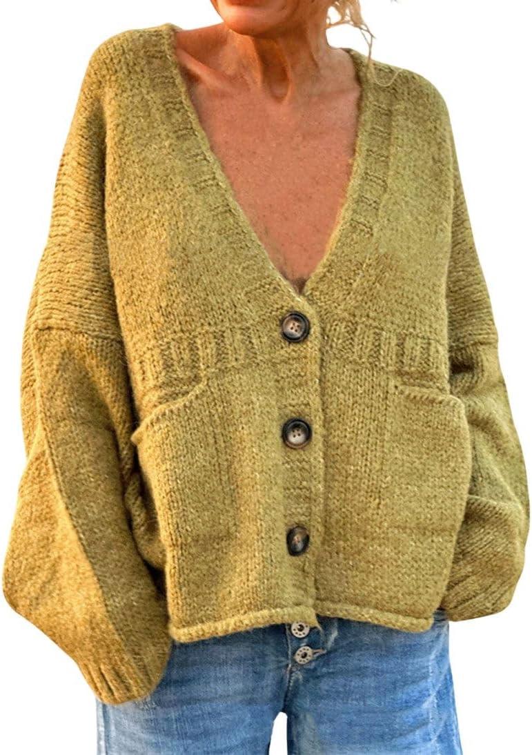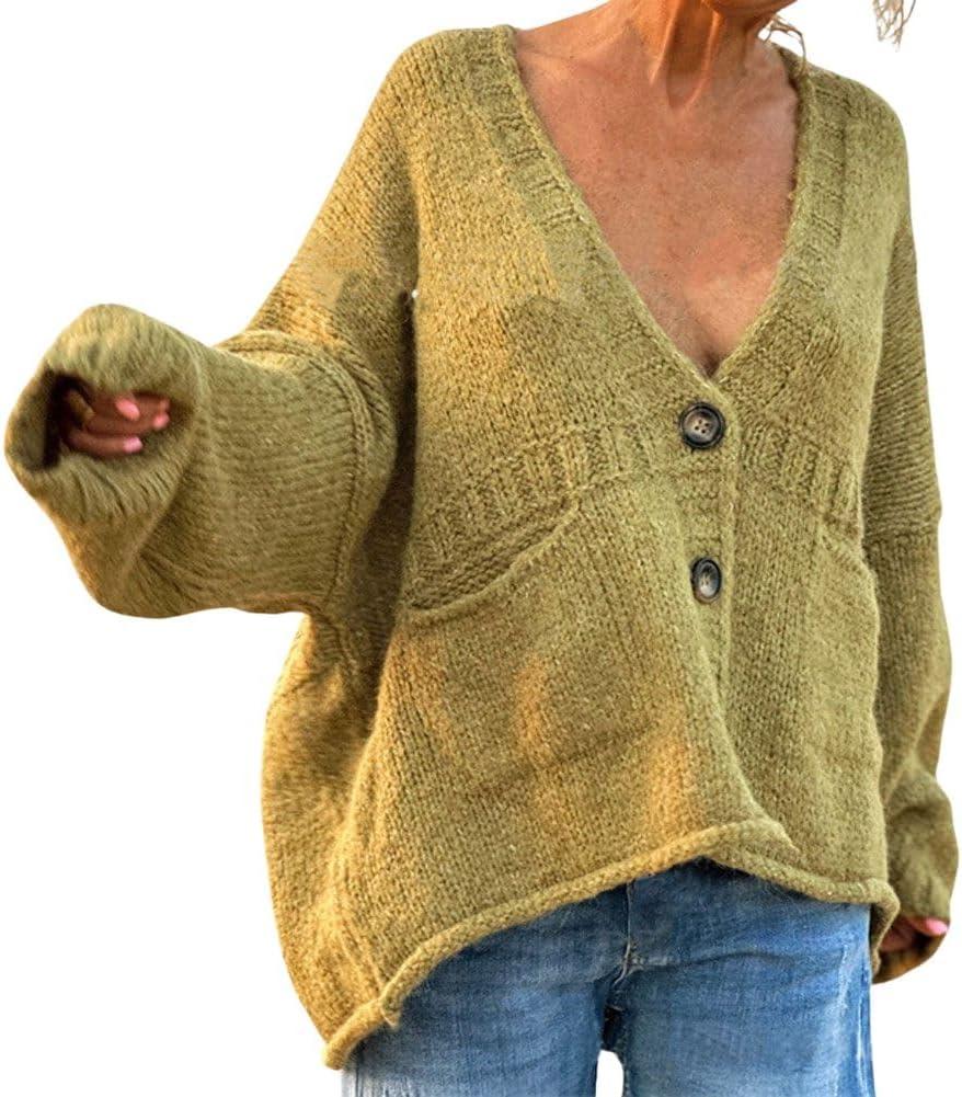 CHARTOU Women Oversized Cardigan Sweater Button Down V Neck Loose Fall Sweater with Pockets(Green)