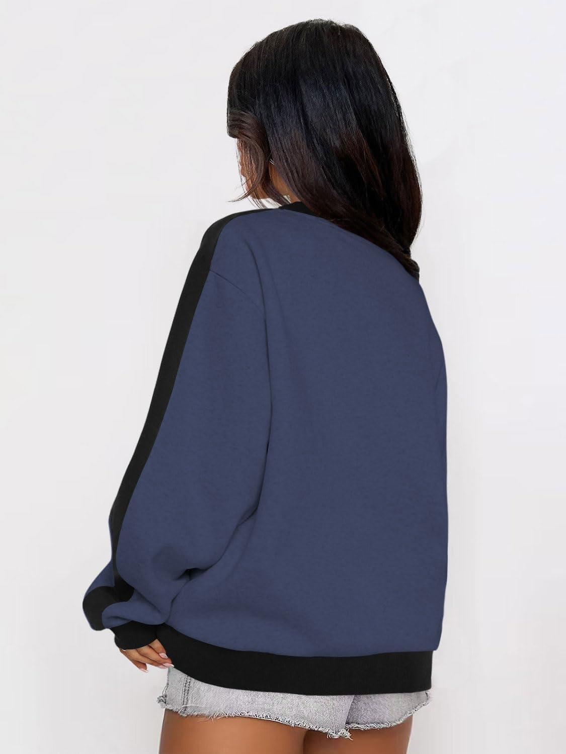 CHARTOU Women Oversized Color Block Pullover Sweatshirt 2025 Fall Outfits Lightweight Crewneck Sweatshirt Tops(Blue)