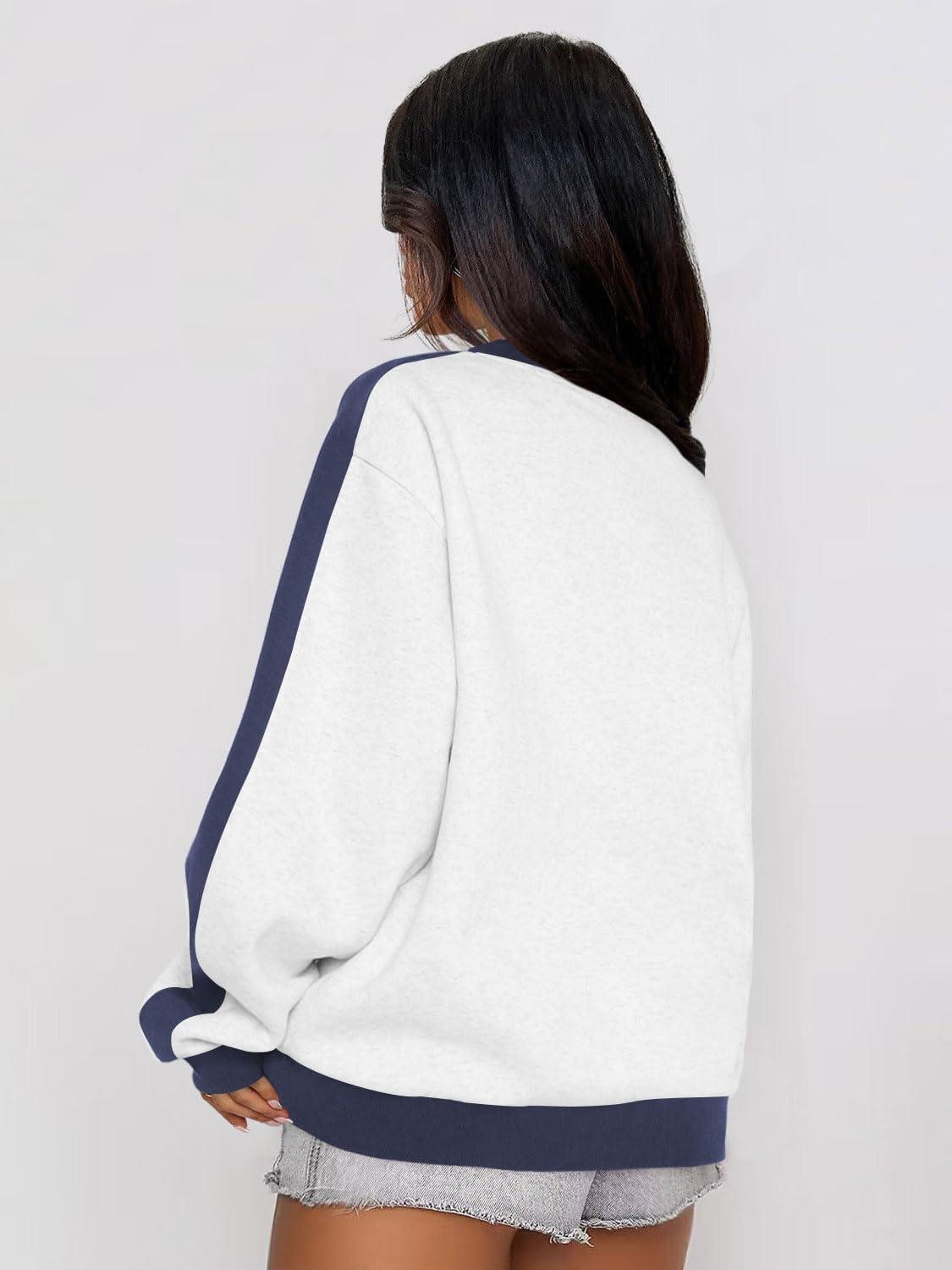 CHARTOU Women Oversized Color Block Pullover Sweatshirt 2025 Fall Outfits Lightweight Crewneck Sweatshirt Tops(White)