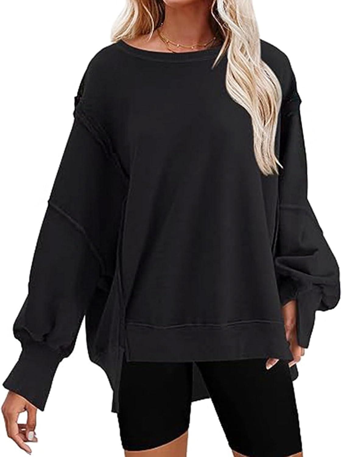 Women Oversized Crewneck Sweatshirt Ripped Distressed Hoodie Lightweight Tunic Shirts Sweatshirt Lightweight pullover sweatshirts Oversized and loose style 【SELLING POINTS】—– Crew neck sweatshirts/ Ripped distressed hem/ Side slit/ Retro style/ Drop shoulder/ Lantern long sleeves/ Patchwork style/ Solid color- white, apricot, light gray, rosy, khaki, dark grey, blackish green, army green, coffee, black 【VERSATILE SWEATSHIRT】—- Weekend oversized crew neck sweatshirt for women long sleeve hoodies, daily wear womens retro vintage ripped hooded pullover, Y2k soft sweatshirts for women tunic shirt pullover top sweatshirt, going out baggy crewneck sweatshirt pullover fall clothes for teen girls school top lightweight, holiday y2k hoodie essential Outfits