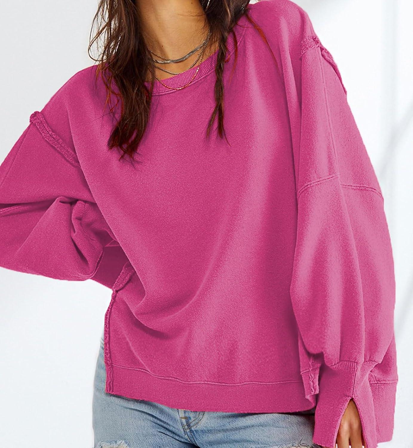 Be the first to review “CHARTOU Women Oversized Crewneck Sweatshirt Ripped Distressed Hoodie Lightweight Tunic Shirts Sweatshirt(Rosy)”