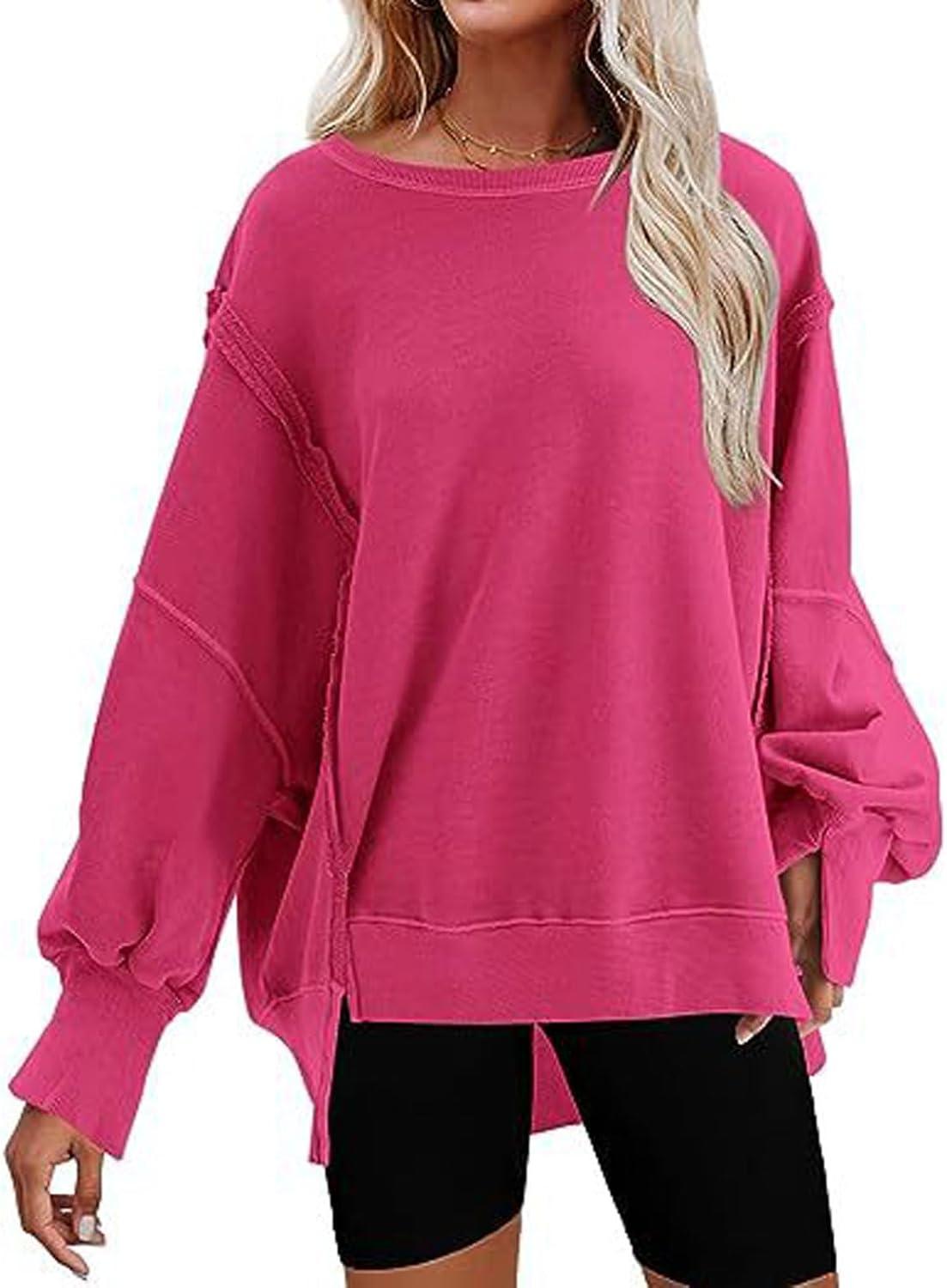Women Oversized Crewneck Sweatshirt Ripped Distressed Hoodie Lightweight Tunic Shirts Sweatshirt Lightweight pullover sweatshirts Oversized and loose style 【SELLING POINTS】—– Crew neck sweatshirts/ Ripped distressed hem/ Side slit/ Retro style/ Drop shoulder/ Lantern long sleeves/ Patchwork style/ Solid color- white, apricot, light gray, rosy, khaki, dark grey, blackish green, army green, coffee, black 【VERSATILE SWEATSHIRT】—- Weekend oversized crew neck sweatshirt for women long sleeve hoodies, daily wear womens retro vintage ripped hooded pullover, Y2k soft sweatshirts for women tunic shirt pullover top sweatshirt, going out baggy crewneck sweatshirt pullover fall clothes for teen girls school top lightweight, holiday y2k hoodie essential Outfits