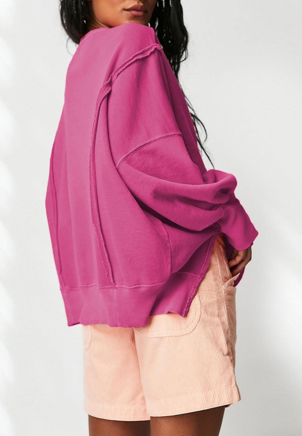 CHARTOU Women Oversized Crewneck Sweatshirt Ripped Distressed Hoodie Lightweight Tunic Shirts Sweatshirt(Rosy)