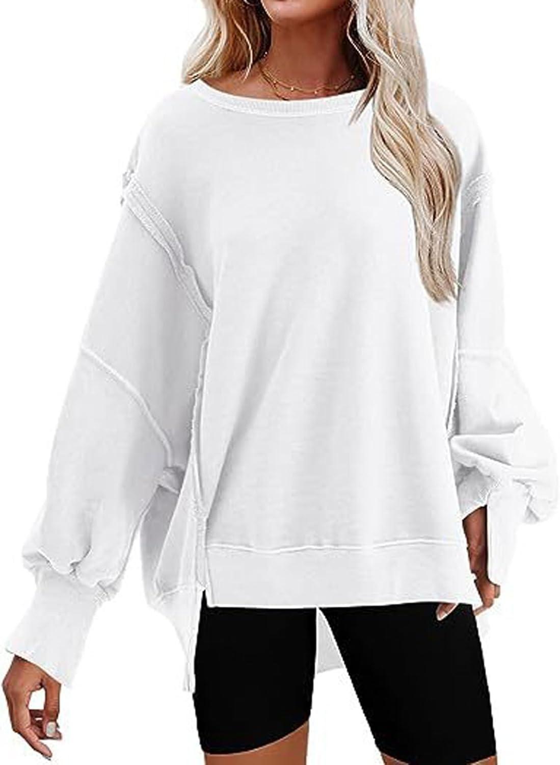 Women Oversized Crewneck Sweatshirt Ripped Distressed Hoodie Lightweight Tunic Shirts Sweatshirt Lightweight pullover sweatshirts Oversized and loose style 【SELLING POINTS】—– Crew neck sweatshirts/ Ripped distressed hem/ Side slit/ Retro style/ Drop shoulder/ Lantern long sleeves/ Patchwork style/ Solid color- white, apricot, light gray, rosy, khaki, dark grey, blackish green, army green, coffee, black 【VERSATILE SWEATSHIRT】—- Weekend oversized crew neck sweatshirt for women long sleeve hoodies, daily wear womens retro vintage ripped hooded pullover, Y2k soft sweatshirts for women tunic shirt pullover top sweatshirt, going out baggy crewneck sweatshirt pullover fall clothes for teen girls school top lightweight, holiday y2k hoodie essential Outfits