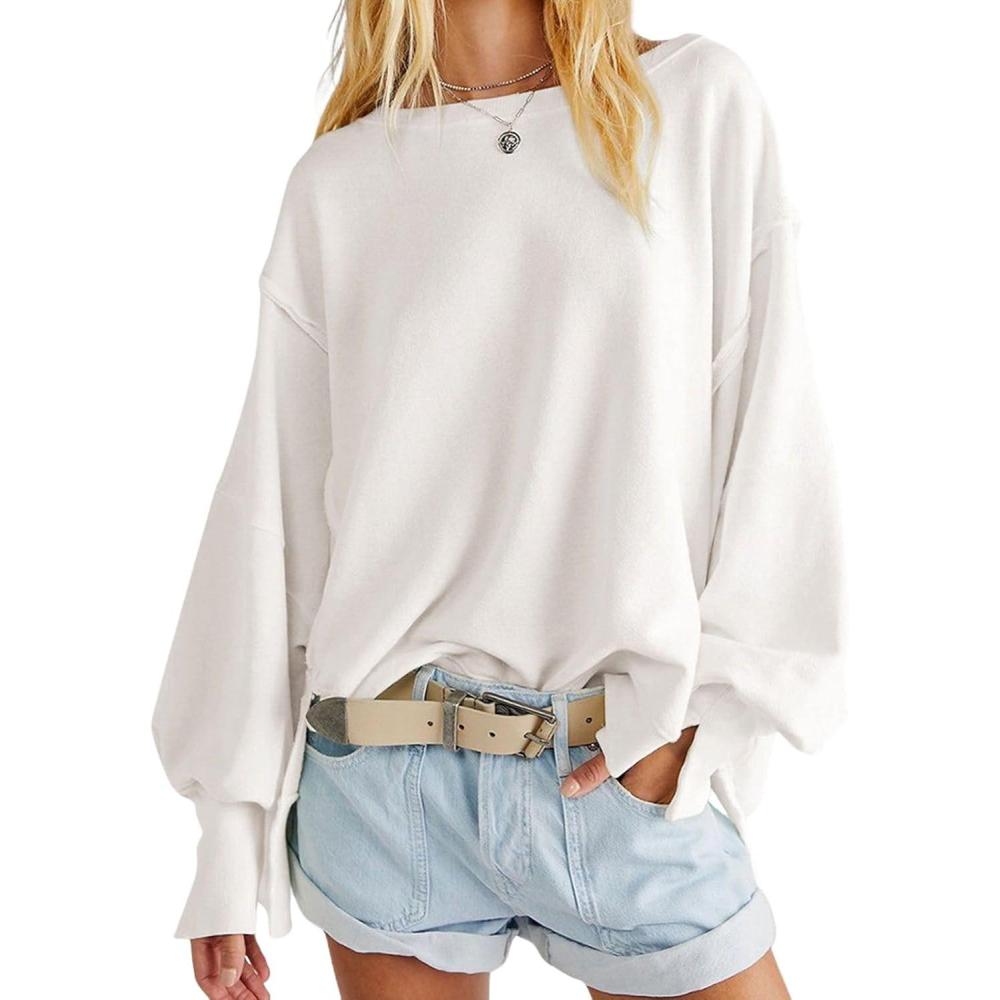 CHARTOU Women Oversized Crewneck Sweatshirt Ripped Distressed Hoodie Lightweight Tunic Shirts Sweatshirt(White)