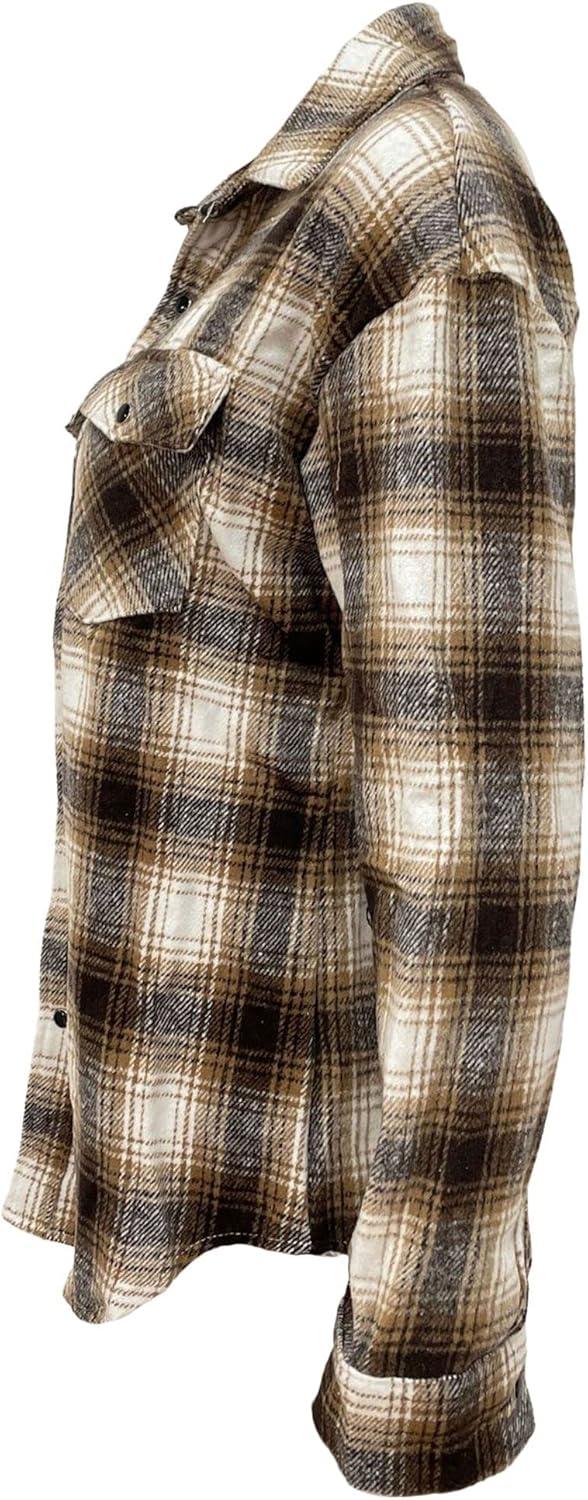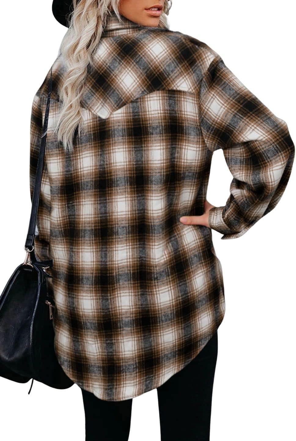 CHARTOU Women Oversized Plaid Button Down Shirt Long Sleeve Cowgirl Shirt Blouse Shacket(Brown)
