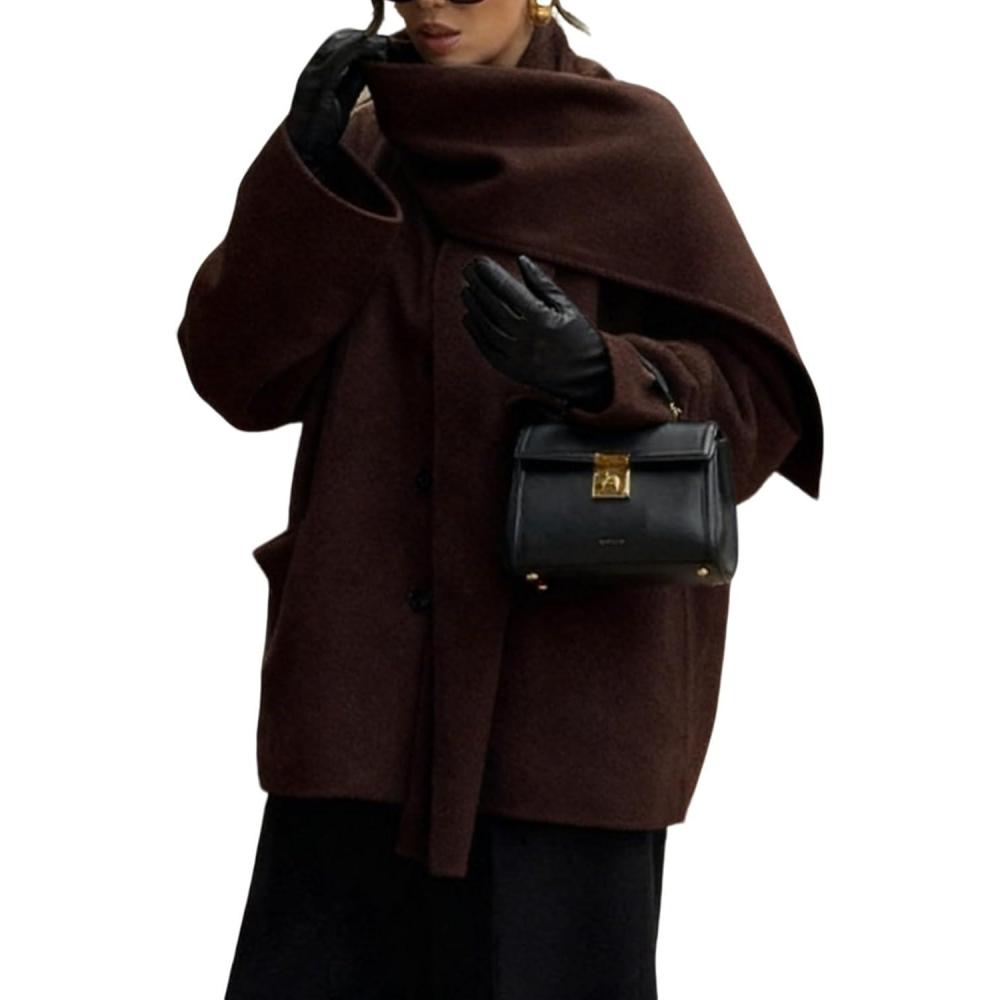CHARTOU Women Oversized Wool Trench Overcoat/Fall Winter Long Sleeve Warm Coat/ Single Breasted Outwear Jacket/ Scarf Shawl Collar Trench Overcoat: Effortlessly transitions from casual to semi-formal occasions. Pair with tailored trousers, denim, or dresses—ideal for layering in fall and winter. The relaxed, oversized fit provides both comfort and a chic, minimalist aesthetic. Accented with functional front pockets and sleek button closures for a polished look