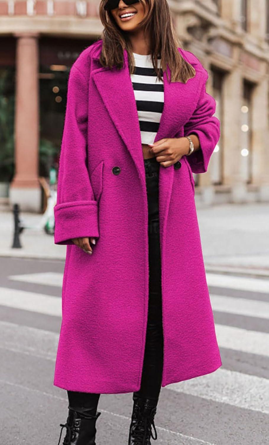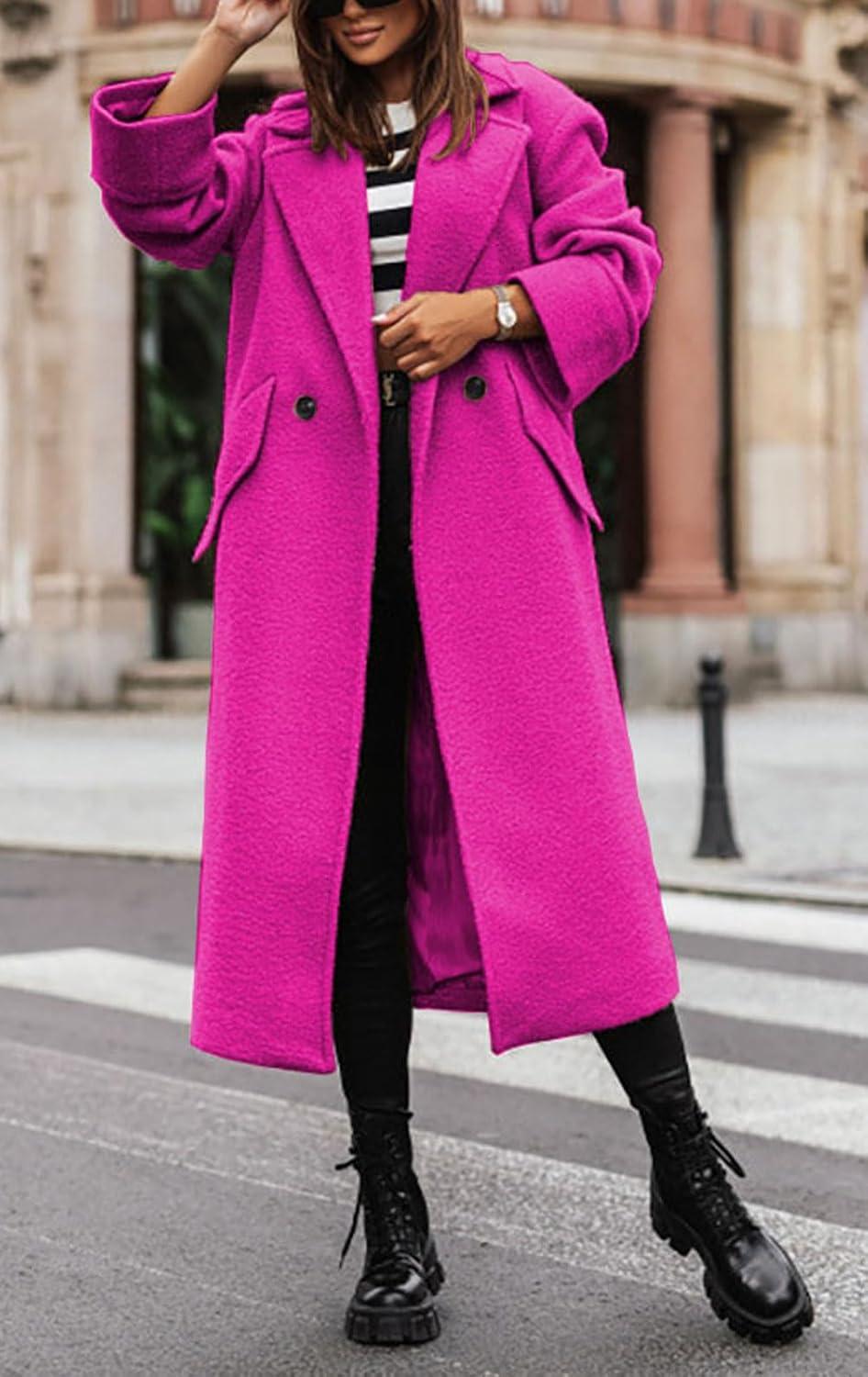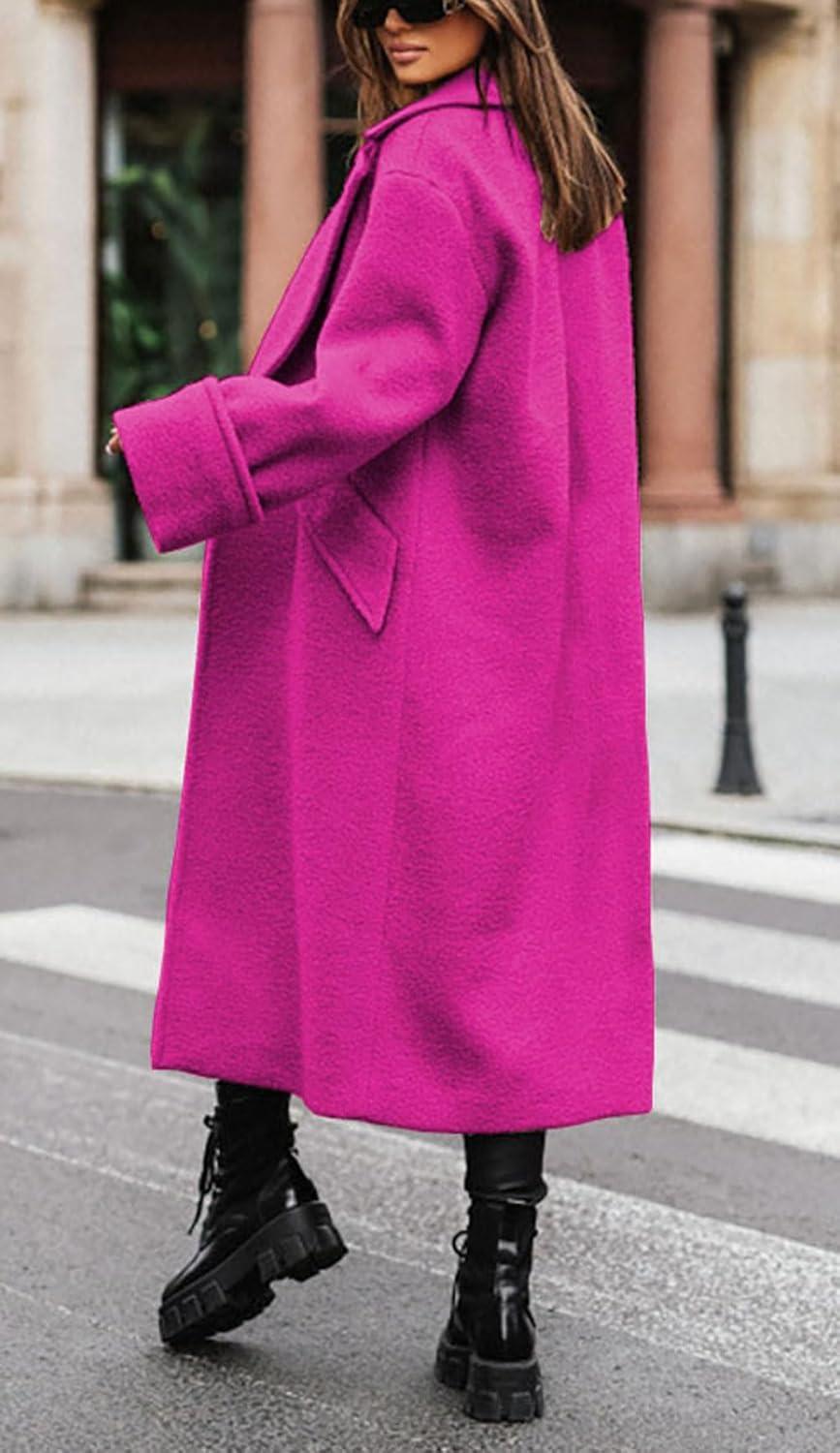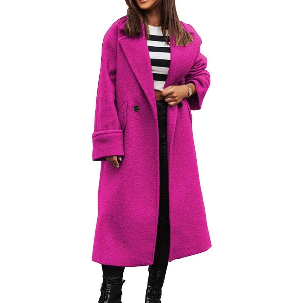 CHARTOU Women Pea Coat Lapel Collar Winter Long Trench Coat Warm Wool Blend Overcoat