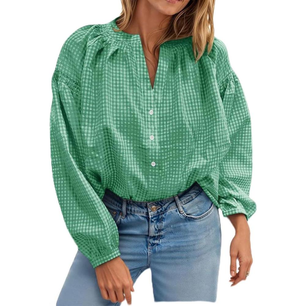 Soft Cotton Fabric: Made from all-cotton fabric, this plaid shirt feels lightweight and gentle on skin, offering breathable wear for all-day comfort, suitable for all body types/ Lantern Sleeves: Trendy lantern sleeves with pleated and relaxed oversized fit create a modern, flattering style that balances femininity with effortless casual charm/ Plaid Print Blouse: Classic gingham give this shirt a fresh, and casual style. This plaid blouse adapts to your look, it adds a touch of effortless elegance to any outfits. Ideal for spring, summer, and early fall. Wear easily with jeans, trousers, or skirts for endless outfits possibilities. Wear it under a coat in winter to create rich layers/ Mock Neck Button Detail: Elevated with a smart stand collar and front half button pullover shirt design, this shirt adds a polished touch to casual outfits while maintaining a laid-back vibe. This plaid pullover blouse can be used as a simple shirt for both workday or weekends, loose fit for most body types