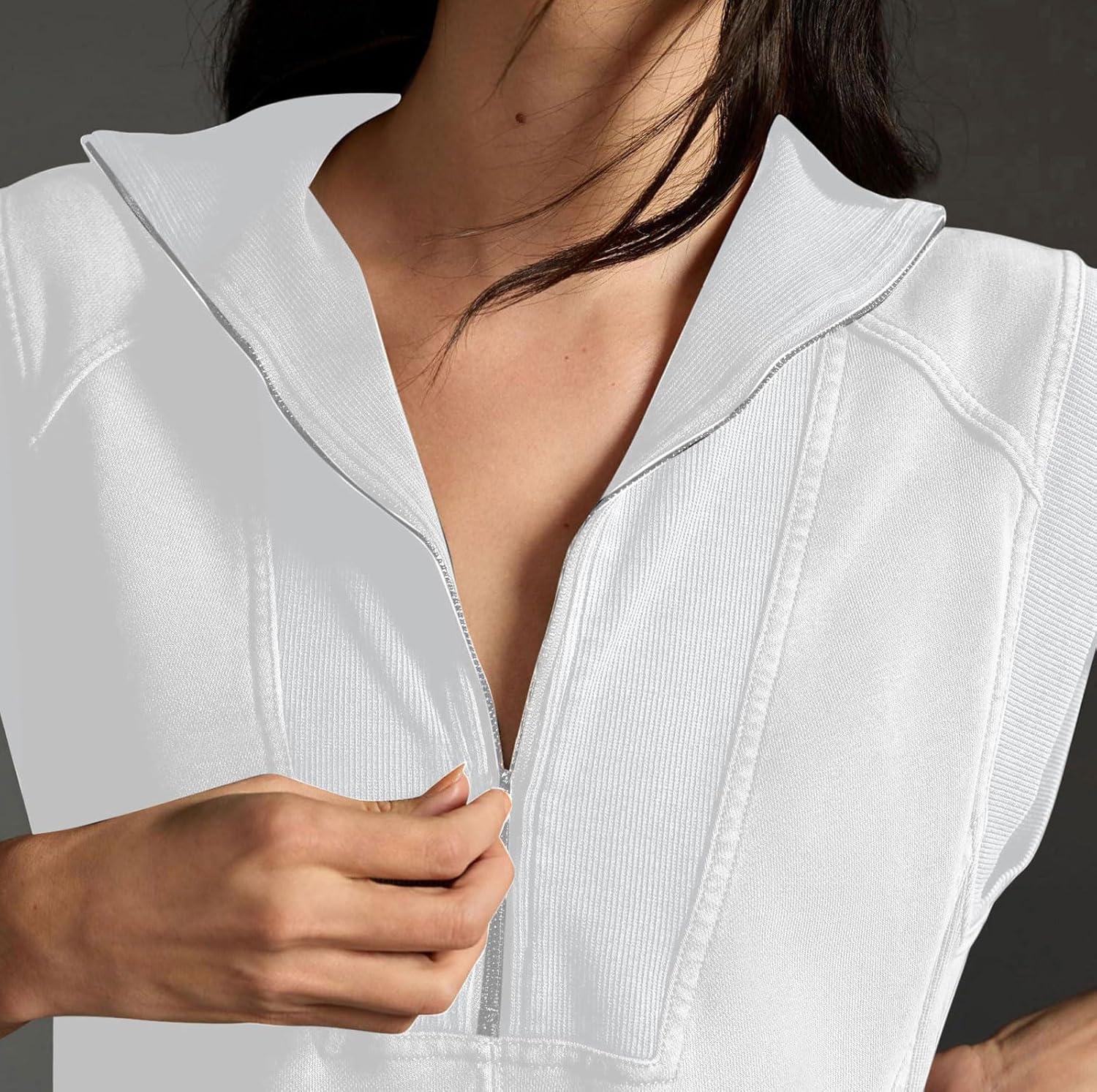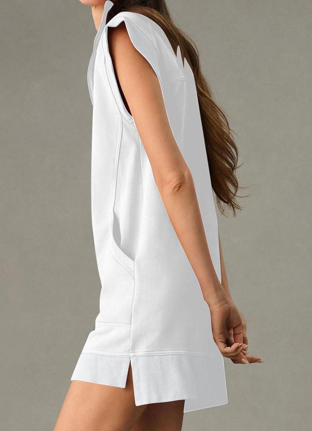 Don’t miss out on our limited-time offer: buy CHARTOU Women Plain Half Zip Sweatshirt Dress Sleeveless Hoodie Mini Dress Summer Casual V Neck Tunic Dress Pocket(White), get {accessory} 50% off!