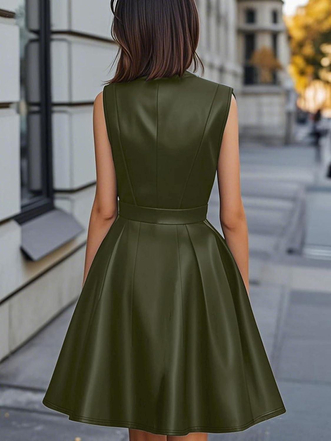 Women PU Faux Leather Dress Elegant Sleeveless Belted V Neck Casual Party Mini Dress with Pockets PU leather dresses for women office work/ Stylish cinched waist pleated short dress with belt/ Office work black leather dress with flare hem vintage green leather dress trendy a line dress for women wedding guest mini leather dress sleeveless cinched waist a line dress with a gold-buckle belt flare pleated dress with swing hem holiday party outfits for women coffee brown leather dress a line mini dress women sleeveless faux leather dress belted party mini dress v neck black party dress elegant pu leather dresses for women casual work pleated short dress for formal olive green leather dress western gold buckle business dress wedding guest dress