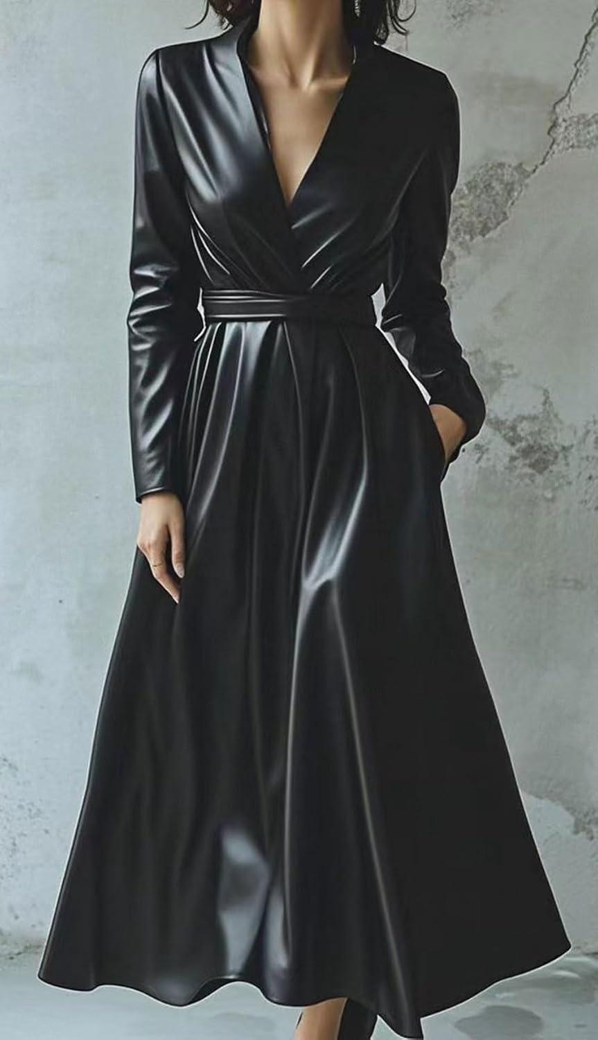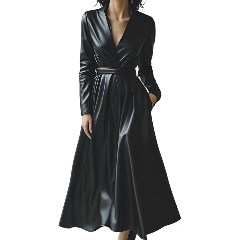 PU long sleeve leather dress for women/ Elegant faux leather long party dress/ Flowy pleather long dress with belt/ Fit Type: Slim fit. The CHARTOU long sleeve faux leather dress offers a causal slim fit. Its chic PU leather flowy long dress provides elegant styling, making it wearable as both for casual long dress or night out party dress/ Size Tips: XS=US 0-2, S=US 4-6, M=US 8-10, L=US 12-14, XL=US16-18, XXL=US 20-22; Stretchy PU leather slim fit long dress accommodates various body types, with a flattering maxi long length that pairs well with your heels, add a belt to create a polished office-ready style/ Long Sleeve Leather Dress: This PU leather long sleeve dress features sexy deep v neck, back zipper closure, two side pockets for essential carrying, elegant long sleeve, flowy big hem, hit around calf-length, high waist with belt. CHARTOU PU Leather dress offers a soft and stretchy pleather, perfectly hug your body, create a sense of feminine/ Occasion: Built for fall winter outfits for women 2025, those fashion clothing item are versatile for various occasion. Women sexy long sleeve faux leather dress for women trendy fall long PU leather dress/ Slim fit women long flowy leather dress for women night out party dress/ Elegant big hem pleather long black dress for women travel holiday outfits/ Sexy plunge v neck faux leather party dress for women trendy