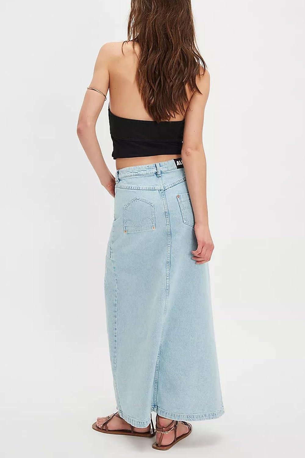 Women Retro Denim Maxi Skirt Mid Waisted Wavy Slit A Line Long Jean Skirt with Pockets Trendy side split up long denim skirts for women/ Women 2025 summer vintage maxi jean skirt comfy dressy solid denim long skirt made of cotton-blend material, combined lightweight and comfy vacation outfits for spring, summer or fall Design: Mid-rise, zip fly and button closure, side wavy split up design, a line silhouette, seam exposure, 5 pockets, ankle-length, chic patchwork skirt, relax fit, vintage and retro style, solid color Spring Jean Maxi Dress: Chic denim maxi dress with slit/ Asymmetrical jean skirt with pockets/ Mid waisted denim long dress/ Casual western skirts for women dressy/ Retro a line jean skirt for women with split up/ Blue jean skirts for women lightweight/ Washed y2k patchwork skirt streetwear Mid waisted maxi denim skirt women side split up long denim skirt y2k retro blue jean skirt spring patchwork skirt western a line skirts summer plus size denim maxi skirt vintage slit skirt loose fit cowgirl outfits club skirt with pockets