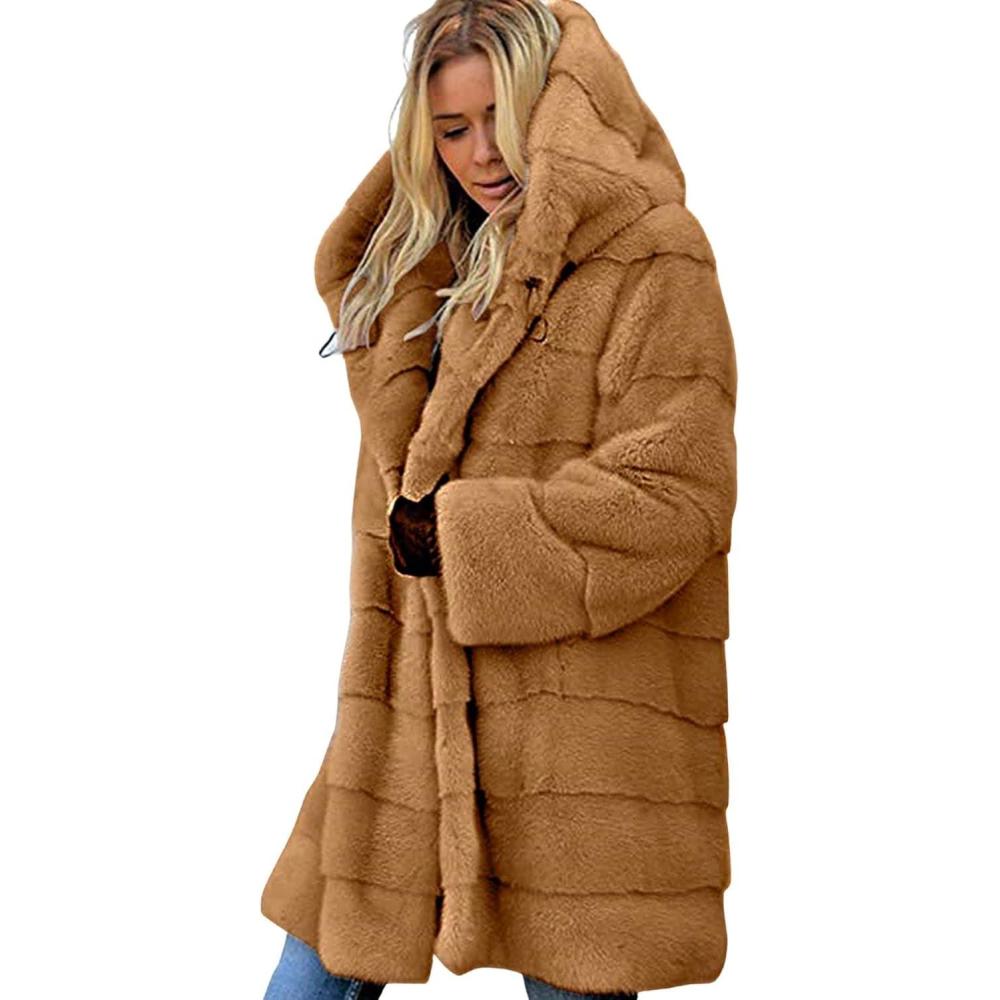 CHARTOU Women Shaggy Faux Fur Coat with Hood Thick Warm Overcoat Long Puffer Coat Fluffy Jacket Winter(Camel)