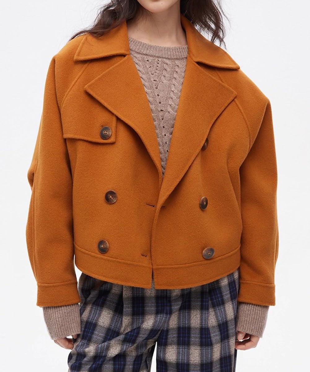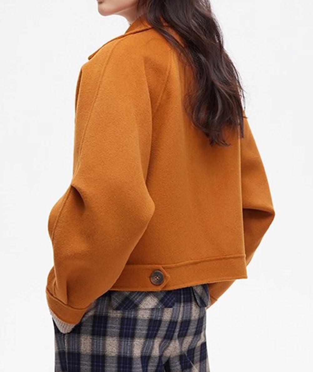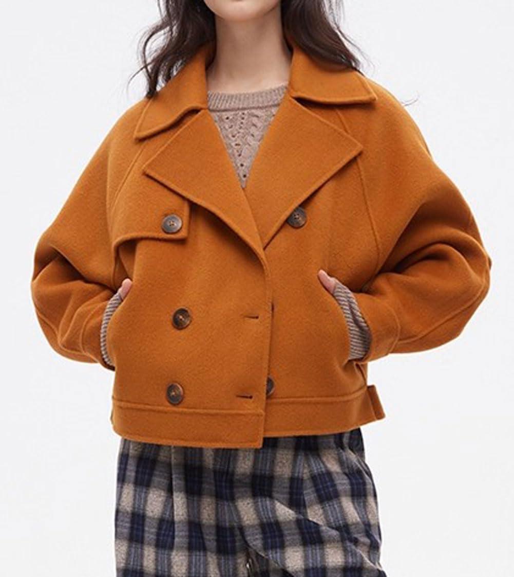 CHARTOU Women Short Pea Coats Double Breast Lapel Overcoats Winter Cropped Wool Jacket(Pumpkin)