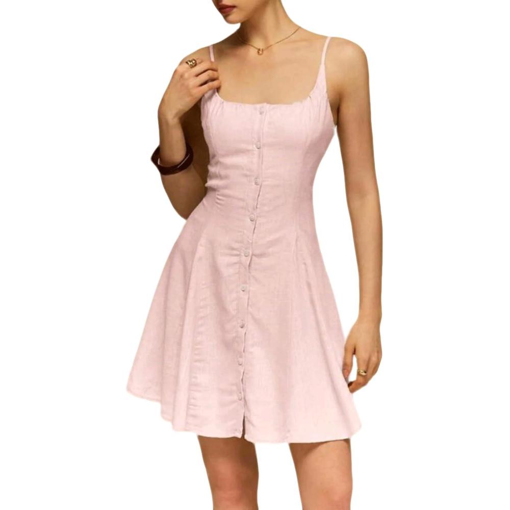 Be the first to review “CHARTOU Women Sleeveless Linen Short Dress Cinched Waist Button Down Mini Elegant Party Dresses(Pink)”