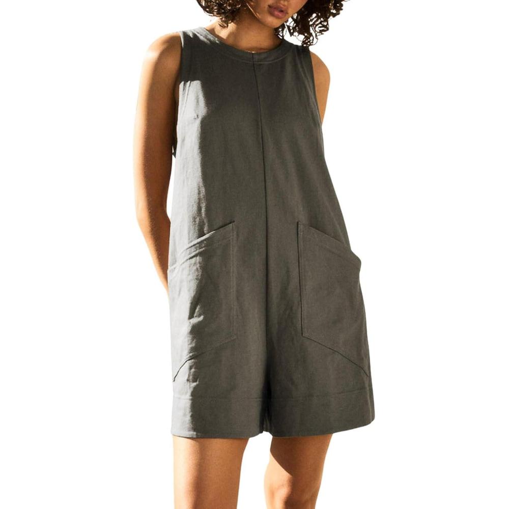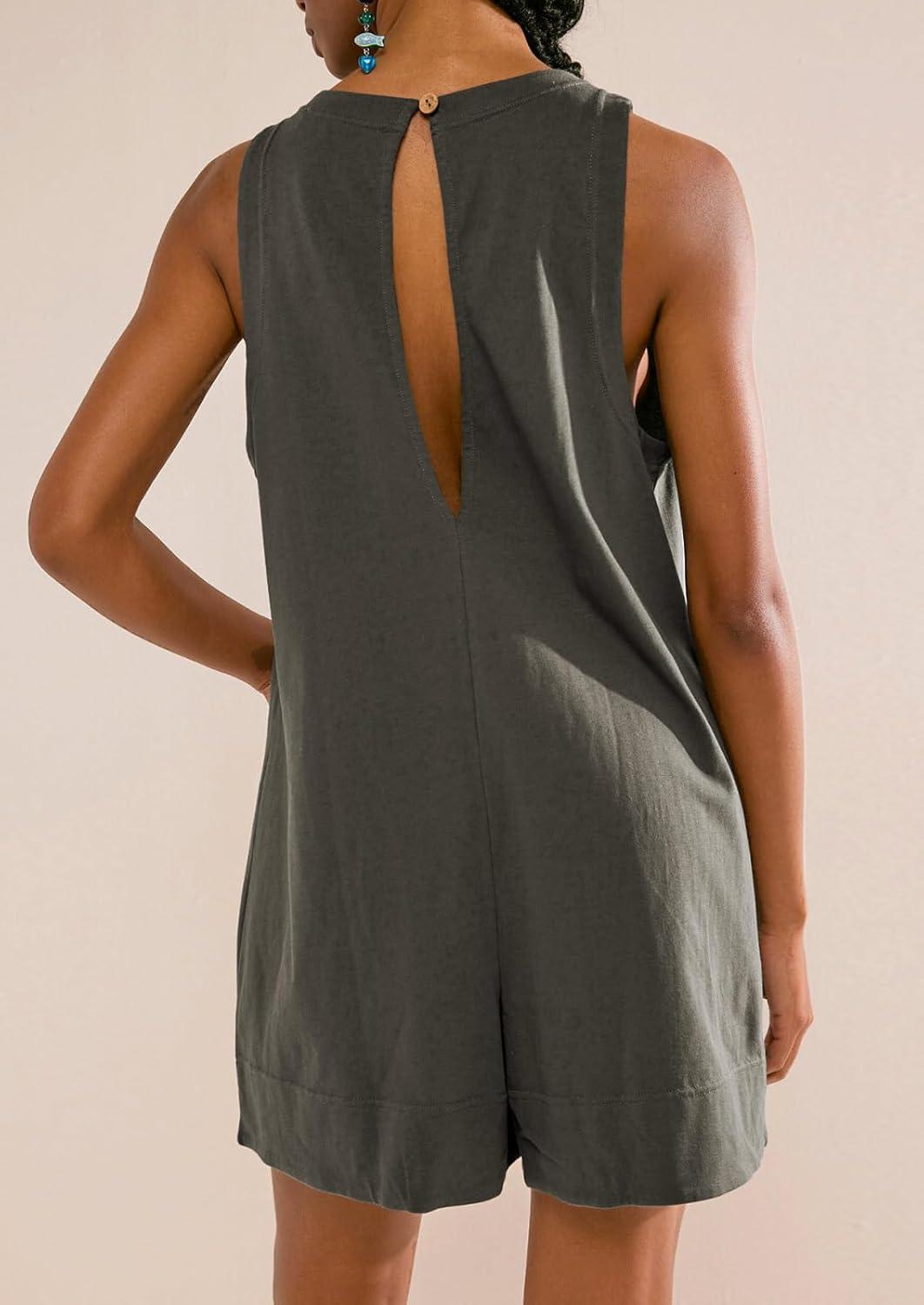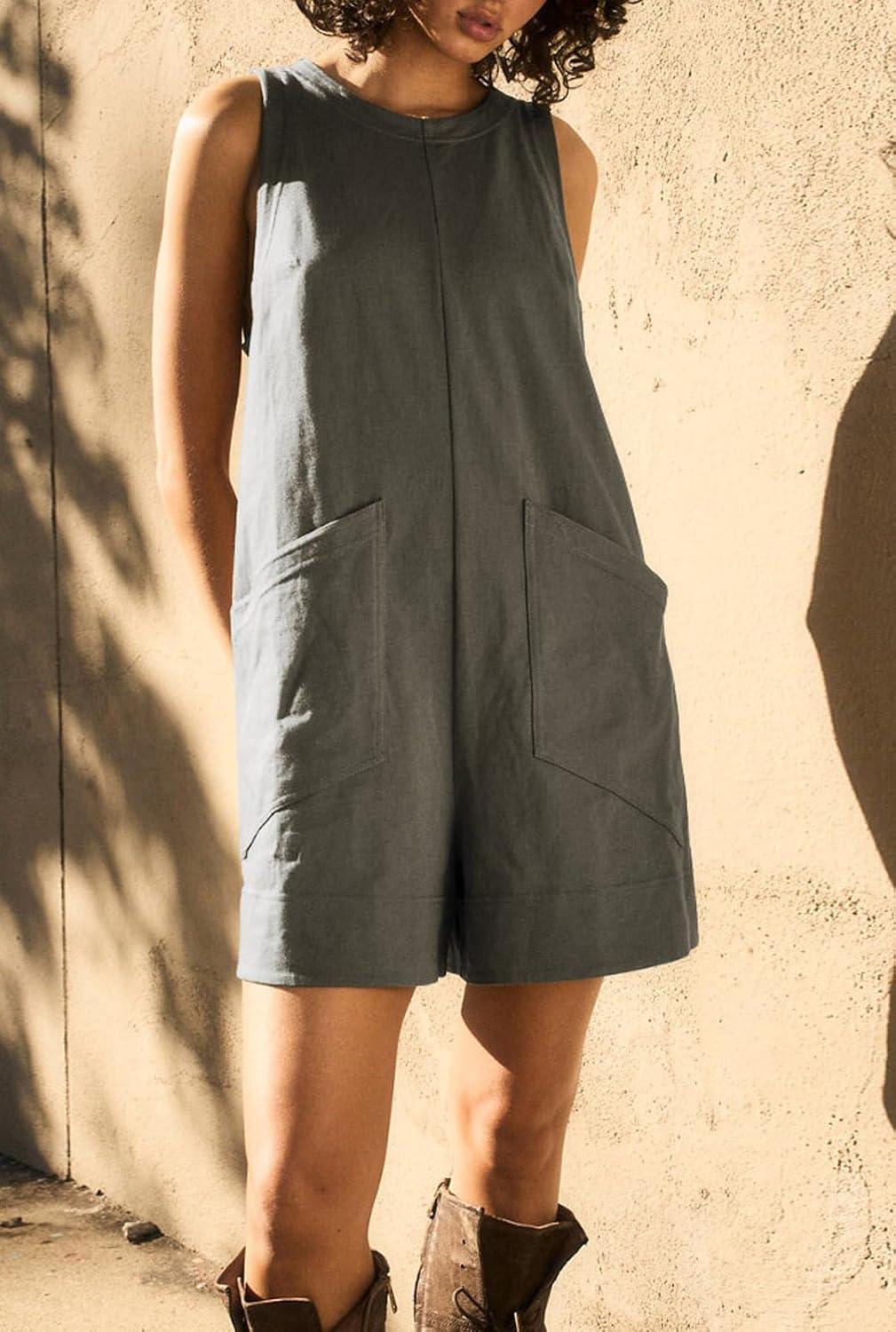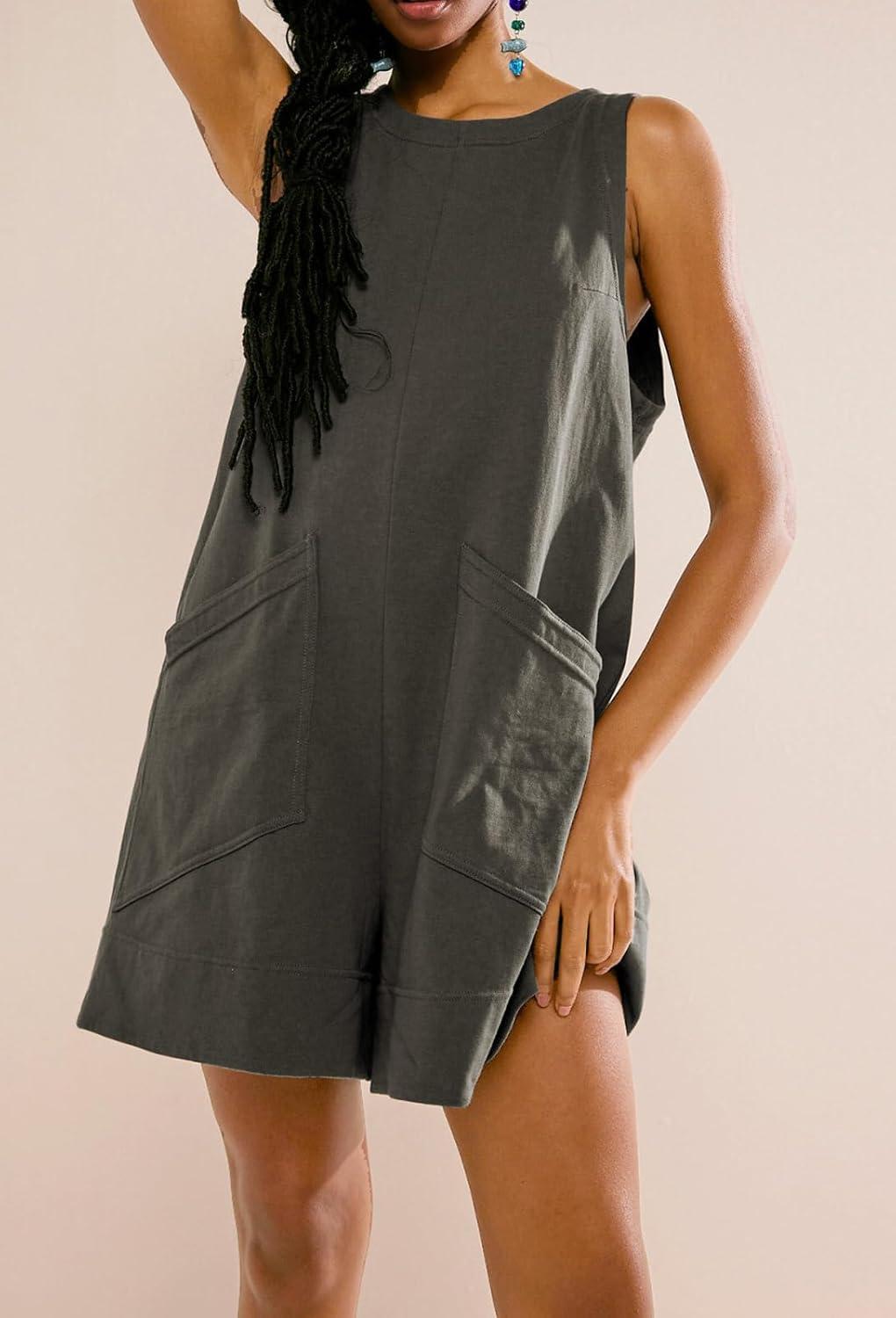 CHARTOU Women Sleeveless Loose Bib Romper Summer Overalls Shorts Jumpsuit Flared Beach Tank Onesie with Pockets(Dark Grey)