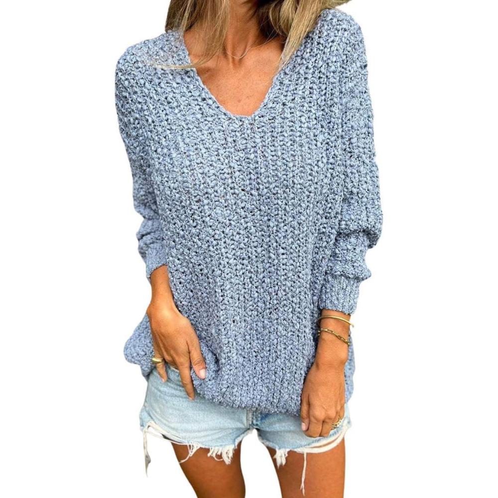 CHARTOU Women Slouchy Chunky Oversized Popcorn Knit v Neck Pullover Sweater Jumper Tops; Slouchy oversized fit cardigan sweater/ Popcorn chunky knit sweater/ Lightweight fall winter fashion outfits sweater; Highlights: Chunky knit pullover sweater tops, super comfortable to wear; Unique popcorn knit sweater pullover; Casual loose fit knitted sweatshirt tops; Design: This solid color loose sweater jumper is crafted with collarless v neck, drop shoulder, long sleeve, popcorn chunky knit, light slouchy fall winter sweater, non-itchy fabric, soft and cozy; Color-Blue, Green, and Hot Pink; Fall Chunky Knit Sweater: This popcorn knit long sleeve sweater jumper is fitted for women and ladies as fall and winter casual day out sweater outfits, green sweater tops for family party or festival, vivid hot pink slouchy sweater tops for night out, soft pullover sweater as lounging tops at home, as a cover sweater tops with your basic camisole for a chic look; Size Guide: S=US 4-6, M=US 8-10, L=US 12-14, XL=US 16-18; This oversized fit chunky sweater can be wear with your basic camisole as a casual day out outfits, or wear with your knit pencil skirt, and boots for a stylish look