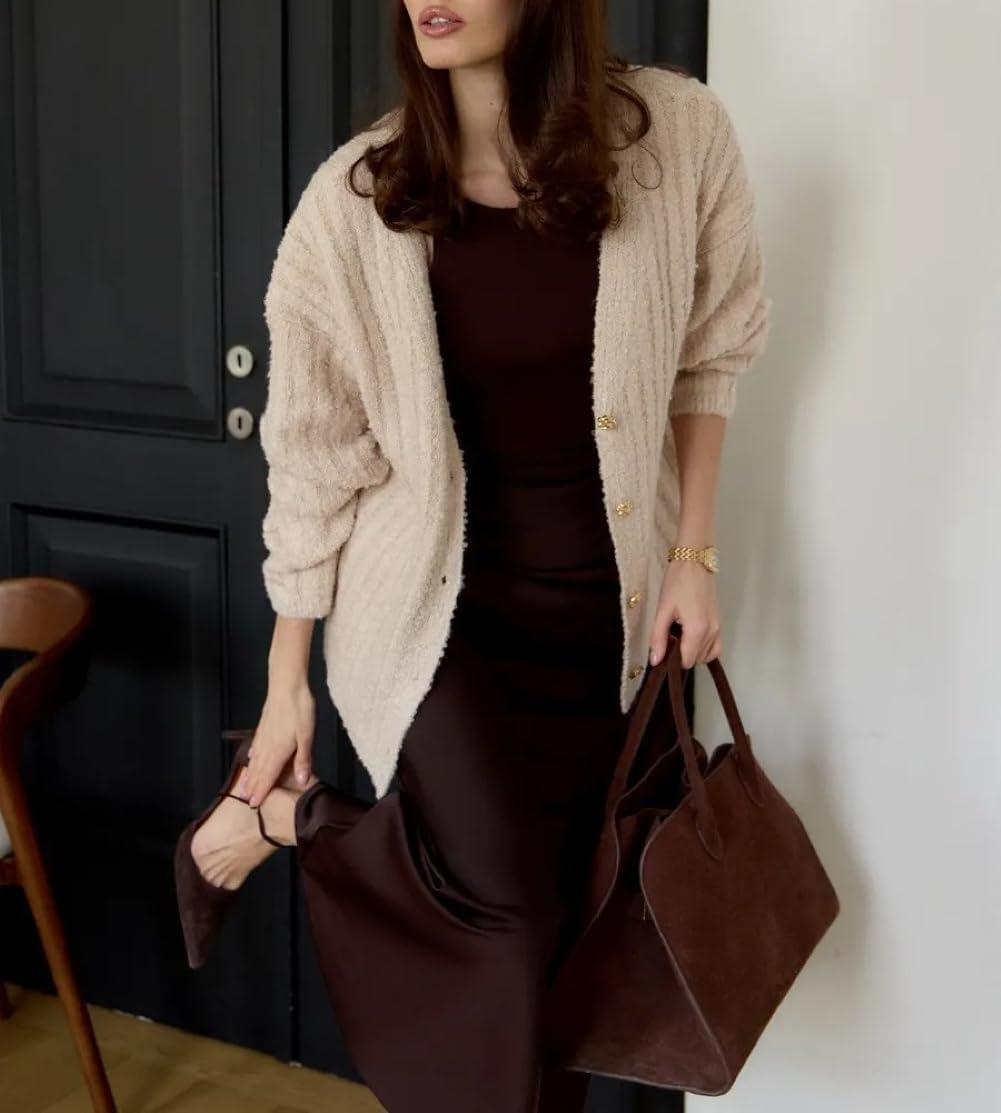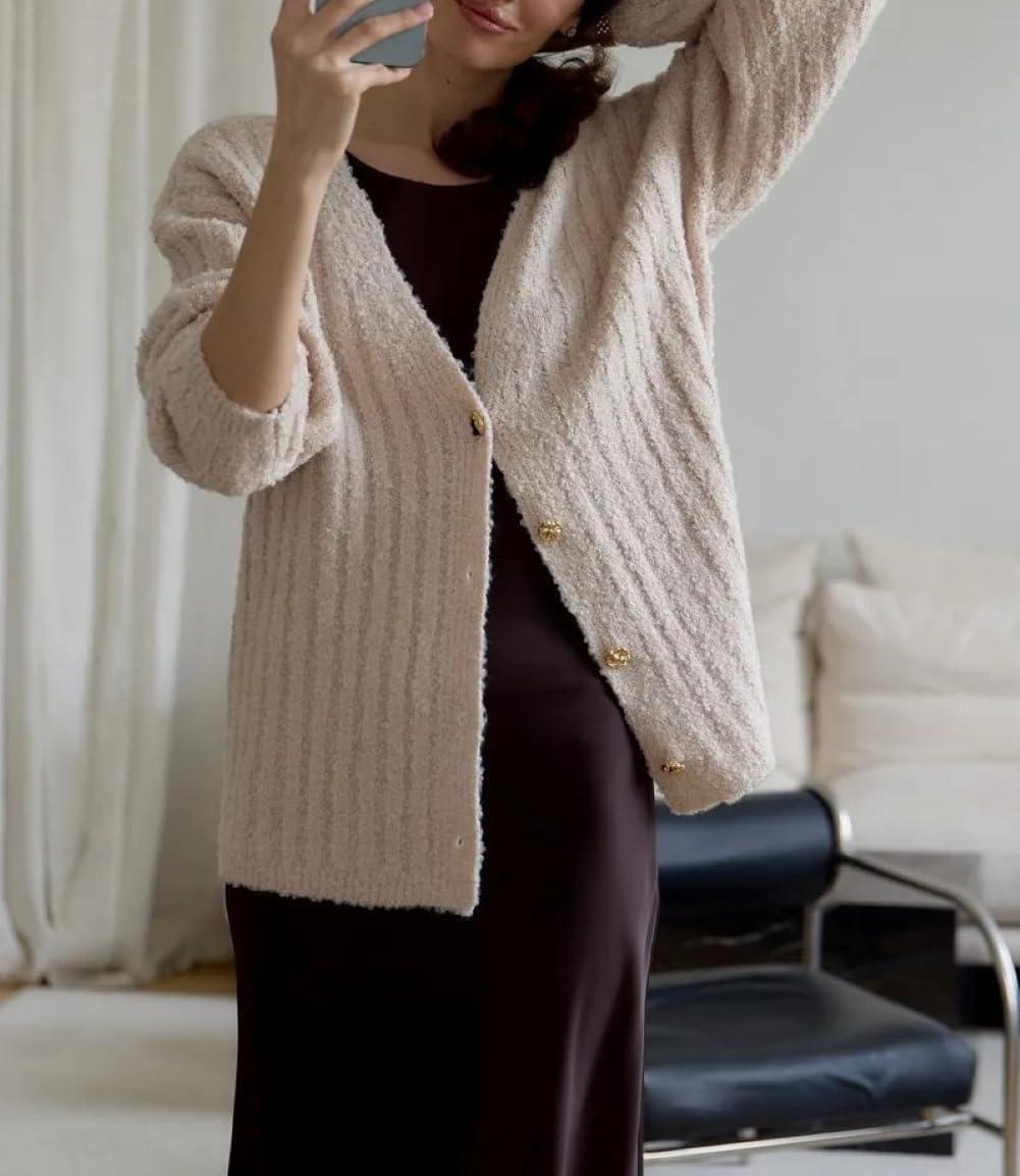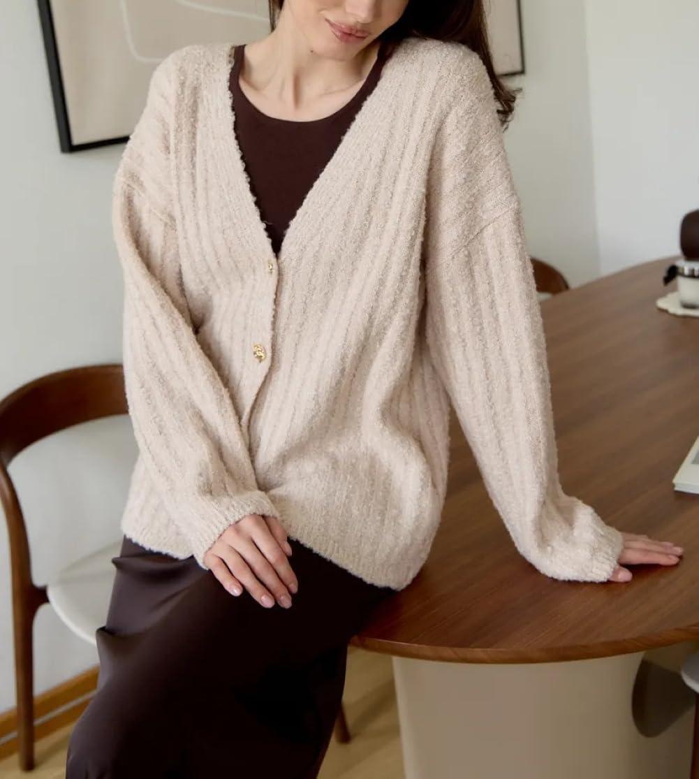 CHARTOU Women Slouchy Fuzzy Knit Cardigan Sweater/ Elegant Deep V Neck Cardigan Tops/ Button Down Long Sleeve Sweater Coat/ Women Trendy 2025 Fall Winter Vacation Clothing/ Oversized Women Maternity outfits