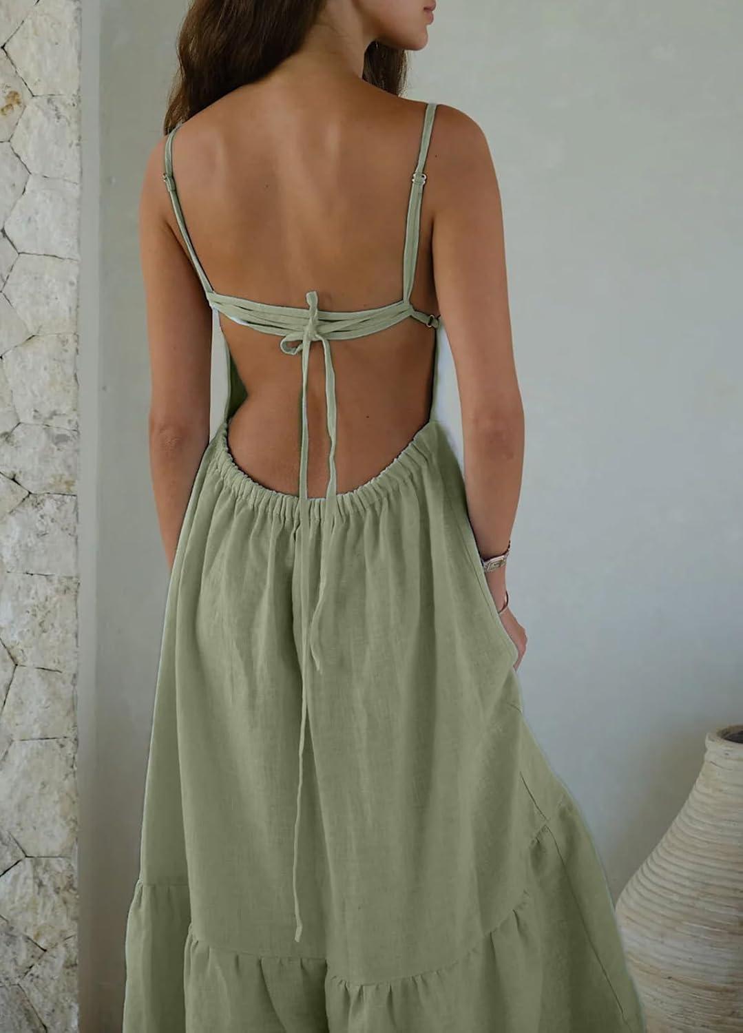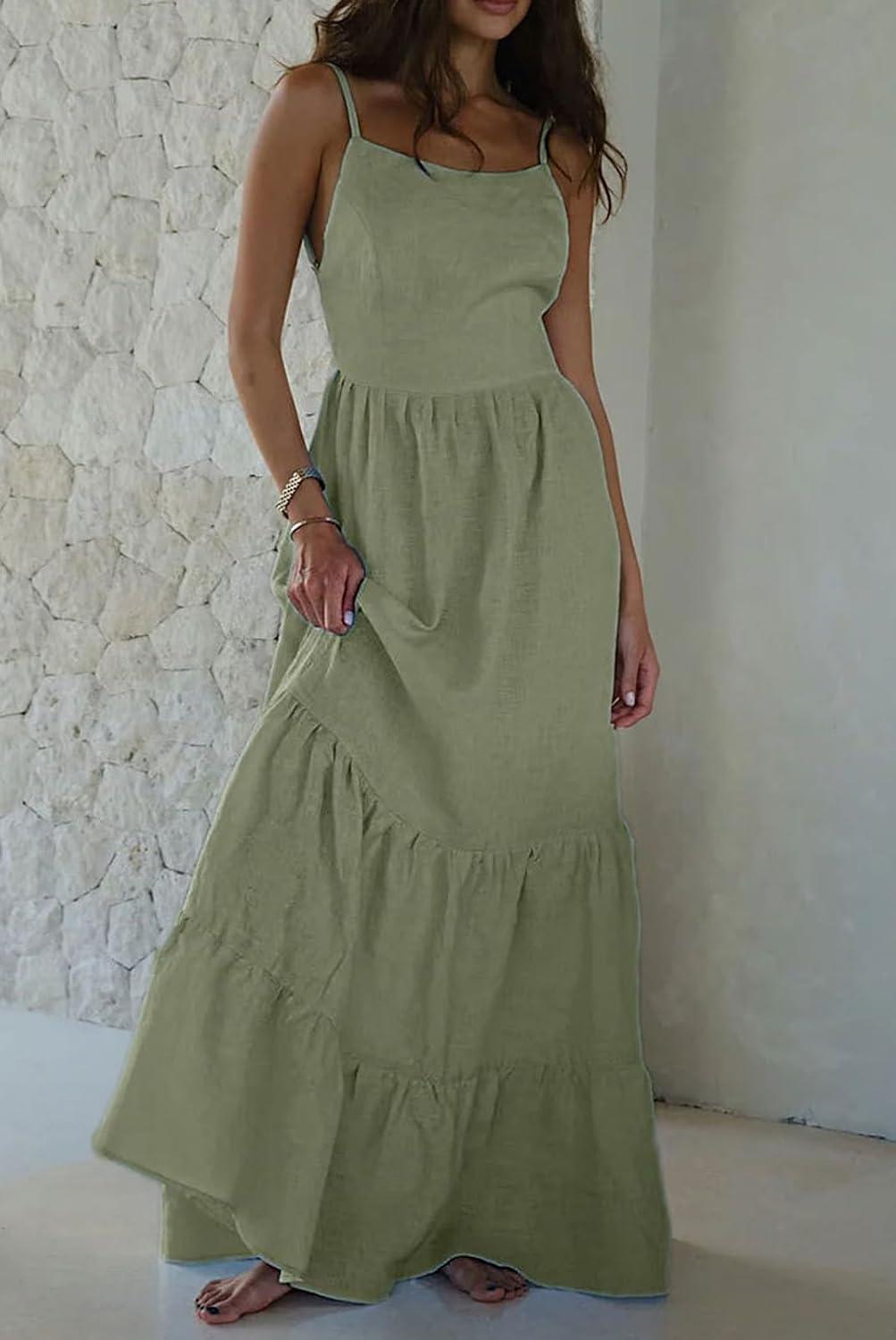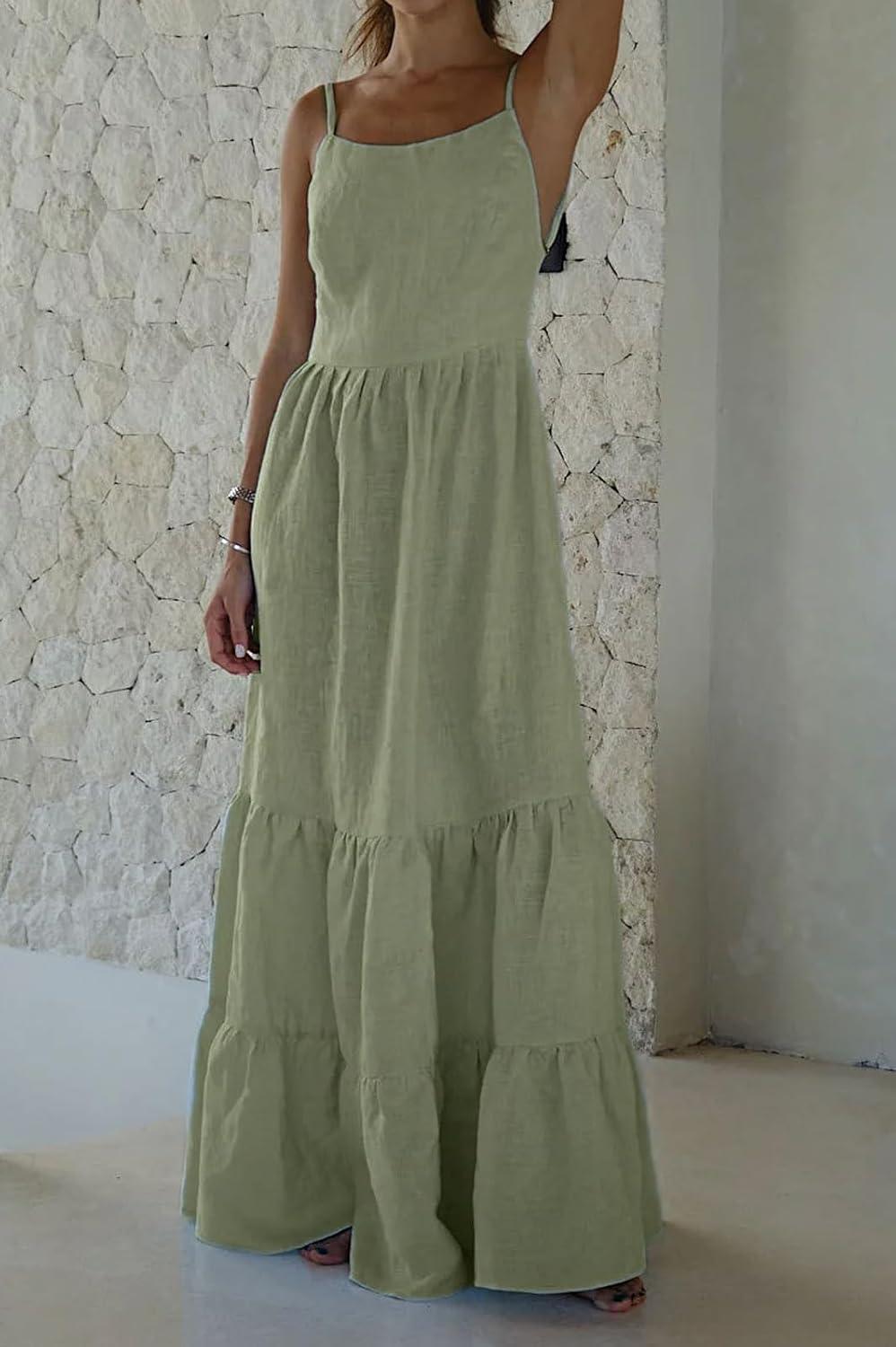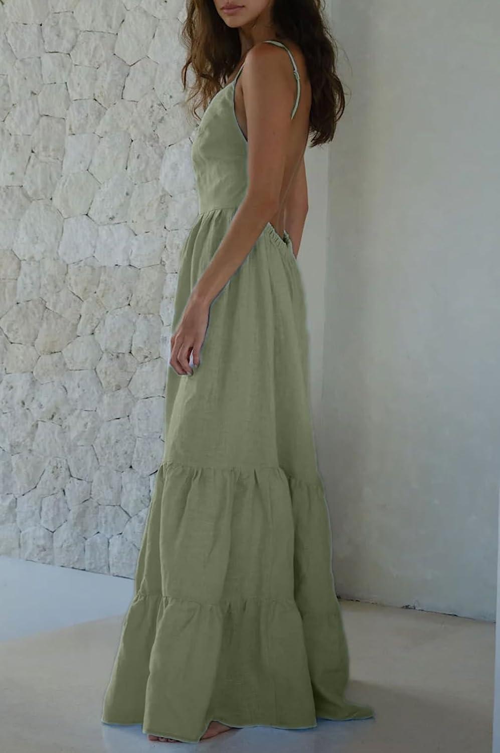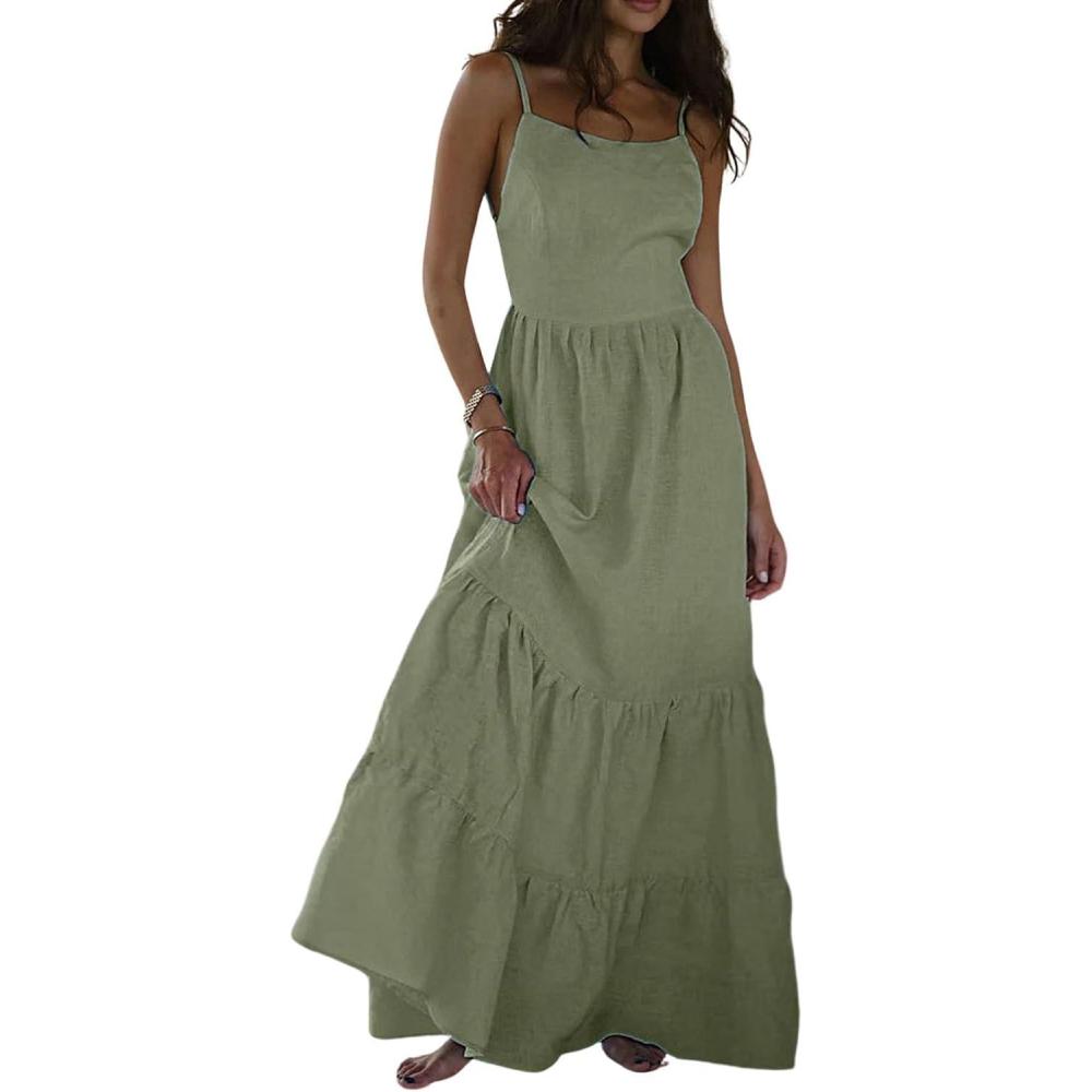 Get up to 70% off on CHARTOU Women Spaghetti Strap Maxi Dress Backless Long Summer Dress Sundress Flowy Ruffle Tiered A Line Dress Beach(Light Green) styles during our end-of-season clearance event.