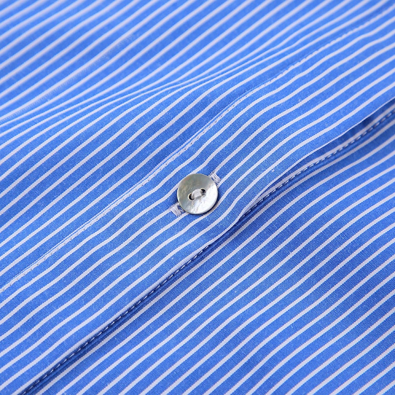 CHARTOU Women Striped Button Down Shirt Lightweight Long Sleeve Stripe Shoulder Pad Collared Chambray Shirt(Blue)