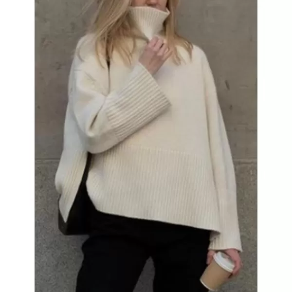 CHARTOU Women Striped Sweater Knit Turtleneck Pullover Sweater Long Bell Sleeve Knitted Tunic Sweater Jumper(White)