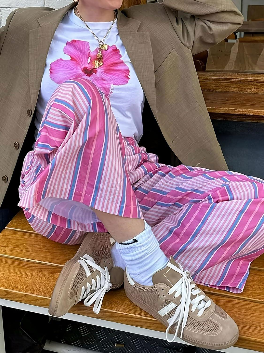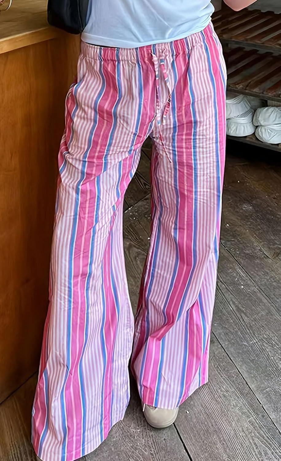 Striped Lounge Pants: This casual colorful pants made of lightweight and comfortable cotton material, may wrinkled but always offer a slouchy and comfort fit/Wide Leg Casual Travel Pants: Casual loose wide leg pants will always offer a relaxed fit, perfect for your holiday casual beach travel palazzo pants/ Y2k Low Rise Rainbow Pajamas Pants: Elastic Waistband with drawstring closure,Y2k girl casual daily wide leg palazzo pants, soft cotton lounge pants trousers for women, and wide leg pants flexibility to accommodate various body shapes and sizes, effortlessly providing a flattering fit/ Designs: Pull on closure, casual cotton long pants for women, 2 side pockets for essential carrying, straight wide leg for comfort fit, colorful rainbow casual pants, lightweight stripe lounge pants, casual loose fit style/ Occasion: Stripe lounge pants for women casual wear/ Casual loose fit stripe pants for women outing/ Y2k low waist pajamas pants for fashion street wear/ Relaxed fit wide leg cotton lounge pants for women travel pants/ Colorful long stripe pants for women outing/ Slouchy fit baggy striped pants for women summer casual pants