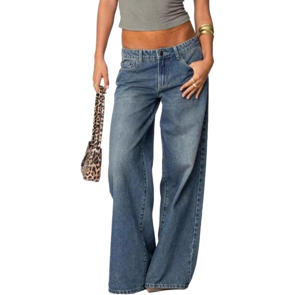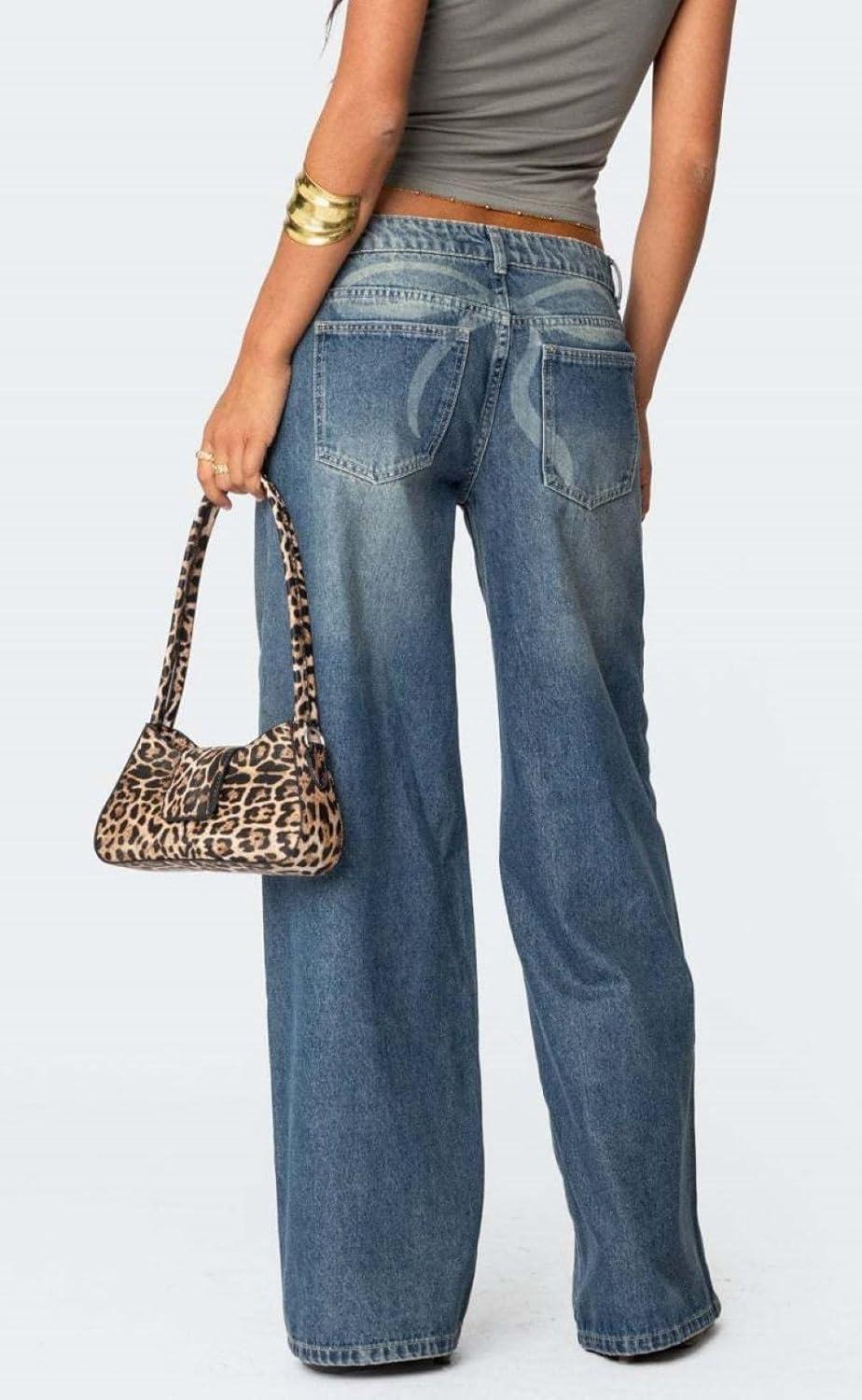 Women Back Bowtie Print Straight Jeans/ Summer Chic Wide Leg Denim Pants/ Y2k Low Waist Baggy Long Jeans