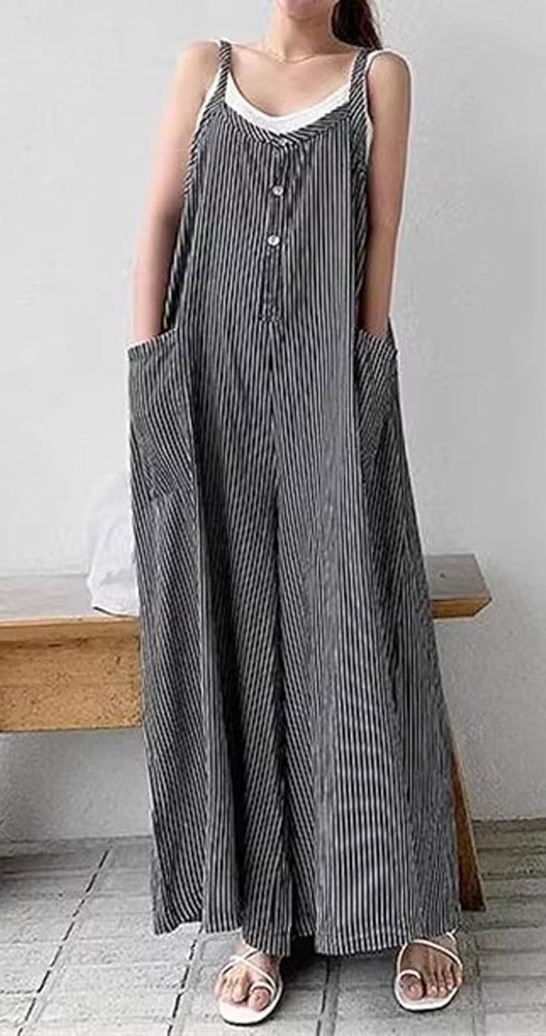 Striped Jumpsuit/ Baggy Wide Leg Pants Overall Jumpsuit/ Spring Break Outfits/ Easter Outfits for Women