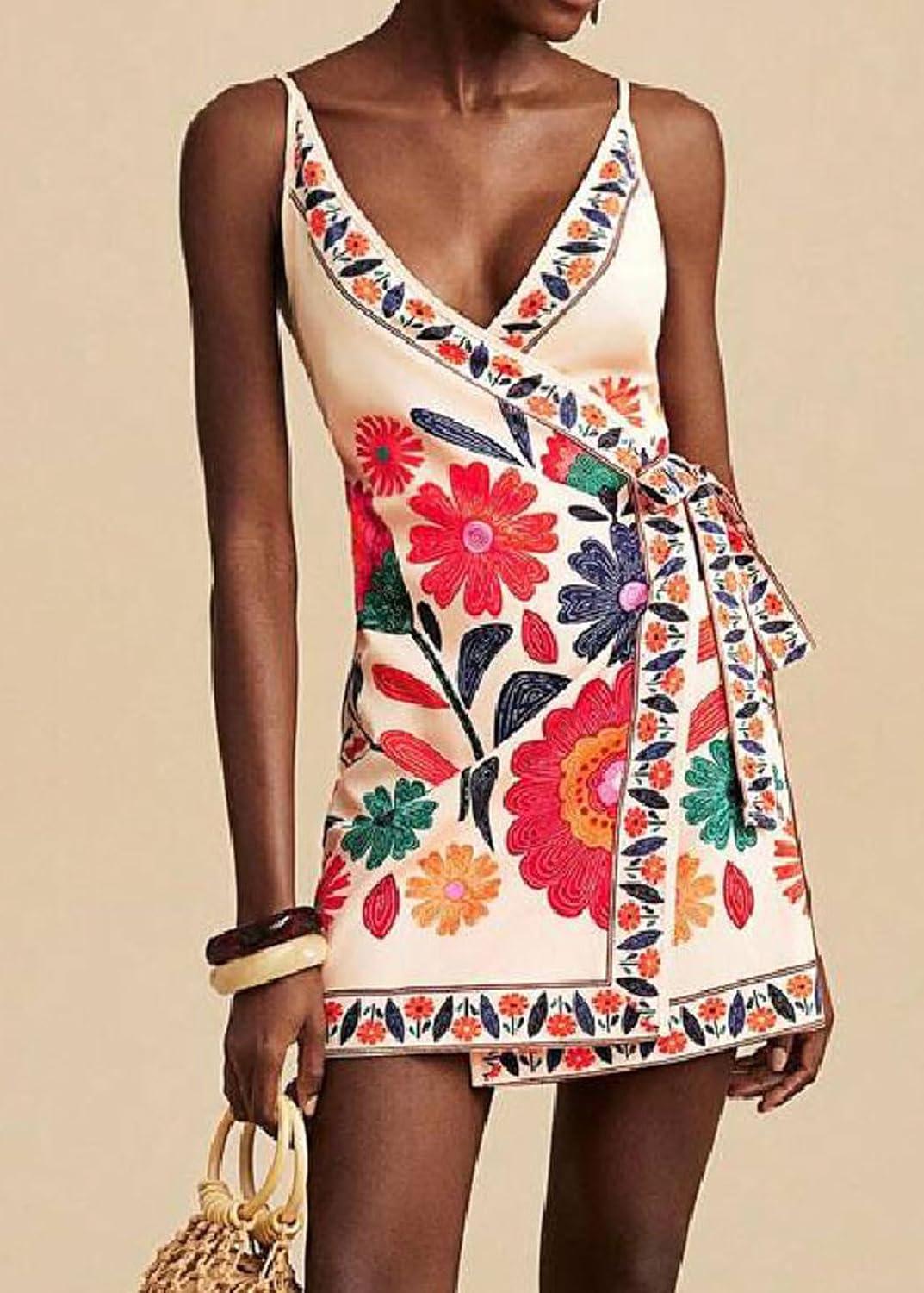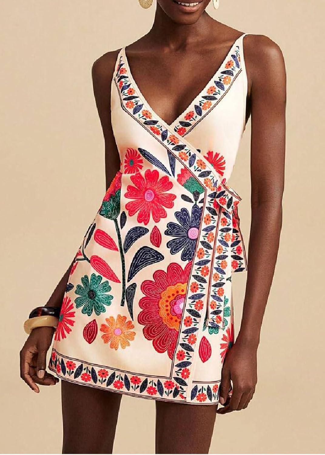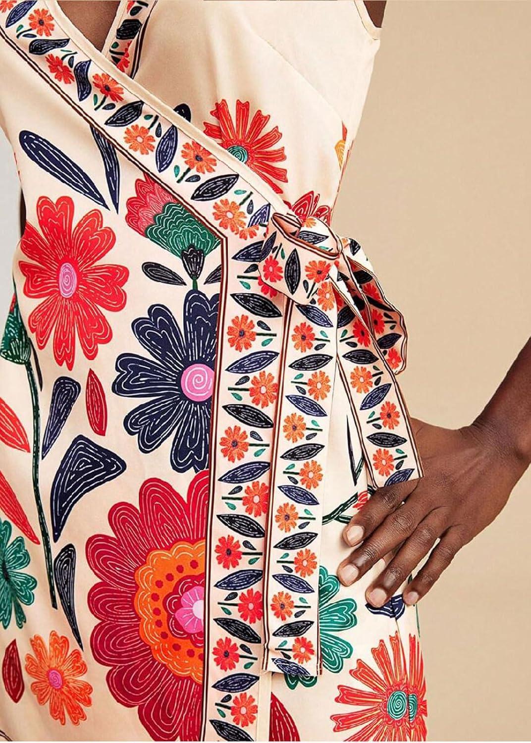 Women Summer Short Floral Boho Wrap Dress Spaghetti Strap Side Tie Asymmetrical Mini Dress Womens bohemian beach vacation dress/ Sexy v neck tie knot short dress for women casual coverups Floral Dress Wrap Mini Dress: Deep v neckline, adjustable spaghetti strap, side tie knot, high waisted, bohemian floral printed, contrast color, asymmetrical, tropical style, lightweight and soft Lightweight Beach Dress: Sexy club mini dress for women casual daily wear, beach party, vacation, streetwear, lounge, dinner, prom, cocktail, weekends, swimming pool and other occasions Women Boho Dress flower print short dress Women boho wrap dress side tie knot mini dress floral bohemian sundress summer adjustable spaghetti strap beach dresses tropical sleeveless vacation dress sexy v neck party dress western cover up one piece outfits flower printed cocktail dress