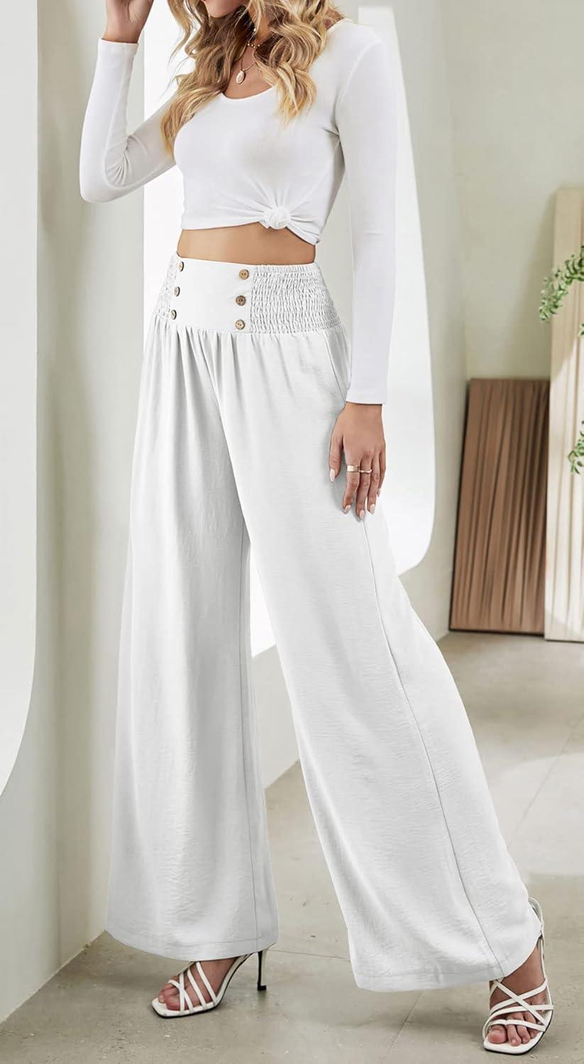 Save up to 40% on CHARTOU Women Summer Wide Leg Pants Palazzo Pants High Waist Beach Pants Flared Smocked Flowy Pants Dressy(White) styles during our end-of-season sale.