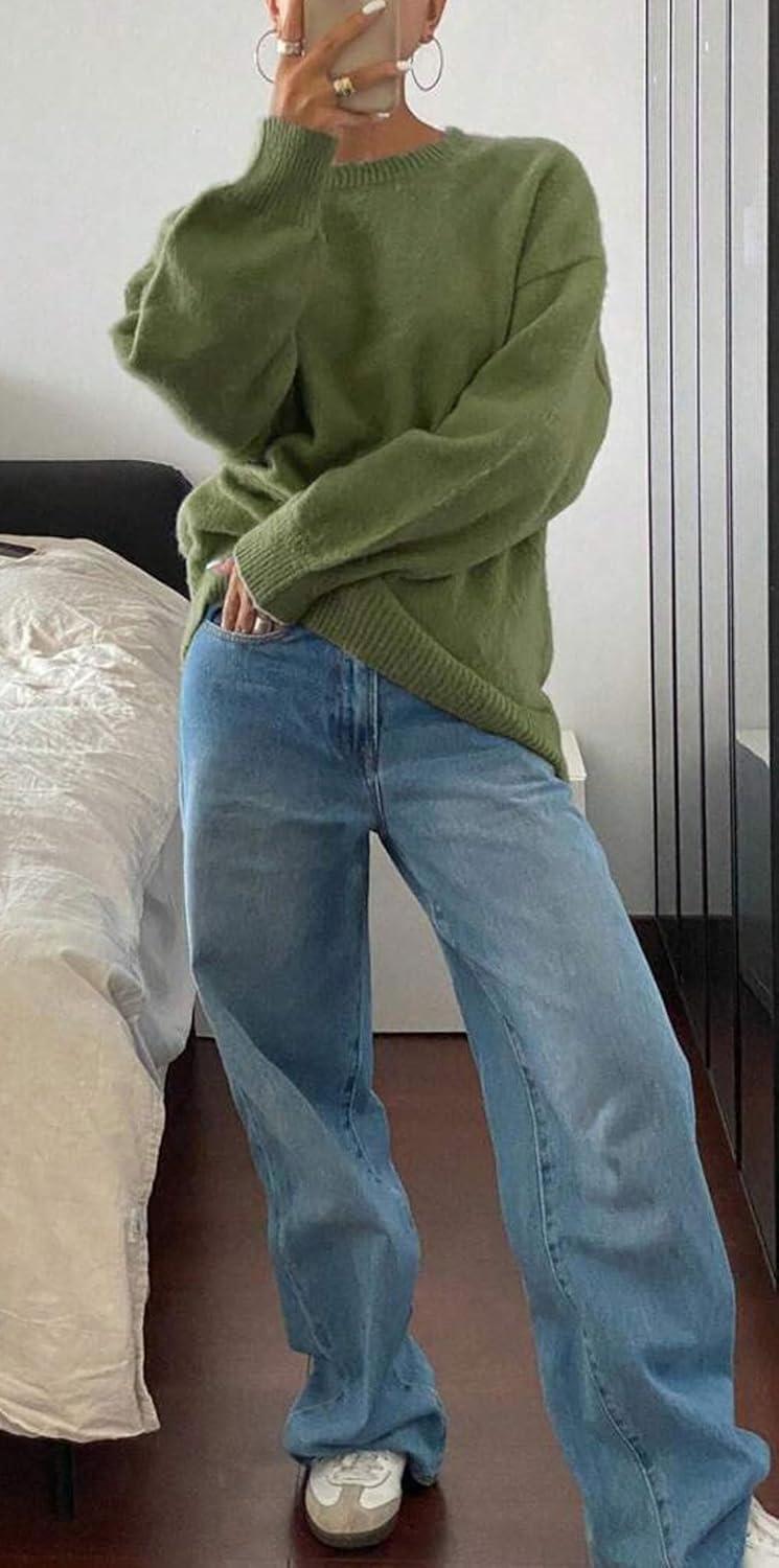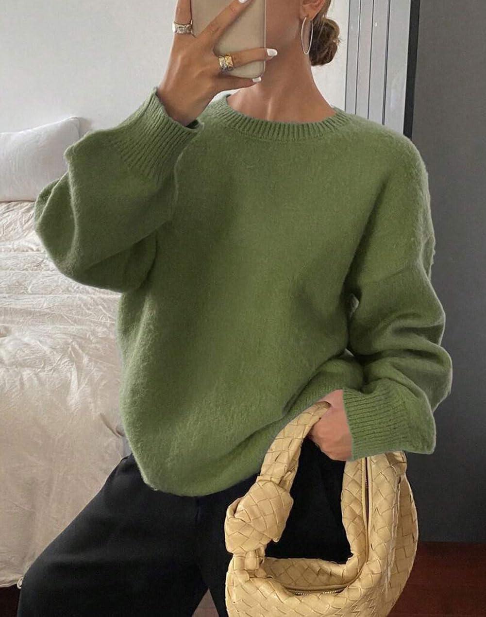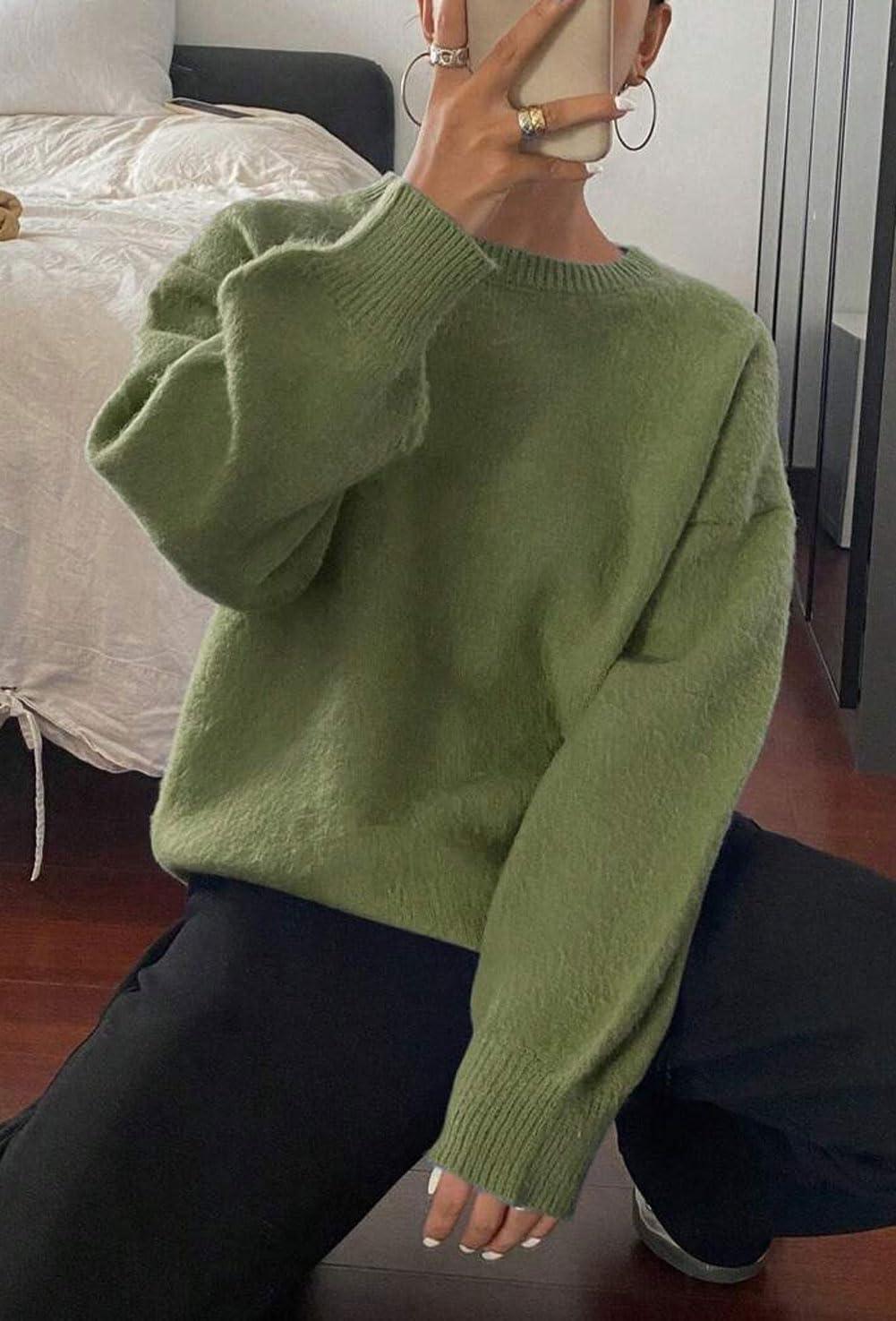 Women Sweaters Fall 2025 Comfort Long Sleeve Crewneck Knitwear Casual Pullover Sweater Outfits/ Comfort causal pullover sweater/ Long sleeve pullover fall sweaters for women/ Oversized crewneck long sleeve sweater tops/ Size Tips: S=US 4-6, M=US 8-10, L=US 12-14, XL=US 16-18, XXL=US 20; Constructed with soft sweater material, this women loose pullover sweater flexibility to accommodate various body shapes and sizes, effortlessly providing a flattering fit/ Casual Loose Pullover Sweater: This women fall sweaters featuring casual crewneck sweater, loose-fitting design, and lightweight solid color knit tops effortlessly offer a fall winter basic comfort sweater jumper tops/ Design: Pull on sweater/ Comfort loose fit sweater/ Crew round neck sweater/ Long sleeve pullover sweater/ Rib-knitted cuff and hem/ Drop shoulder sweater/ Slouchy lightweight sweater/ Solid Color-Blue, Green/ Versatile Fall Women Sweaters: Long sleeve oversized sweater for women/ Casual fall women sweater/ Basic crewneck sweater jumper tops/ Green women pullover sweaters/ Holiday sweater for women 2025/ Soft womens sweaters dressy casual/ Loose fit maternity sweater/ Knitted fall/winter sweater/ Oversized blue sweater for women
