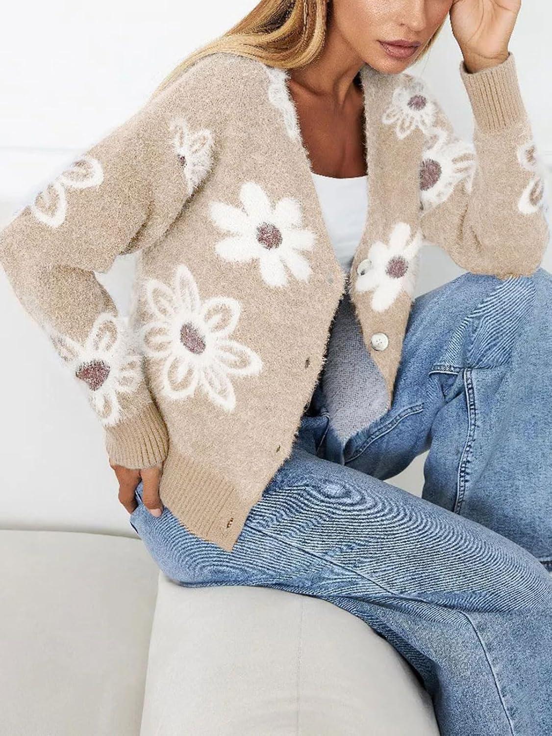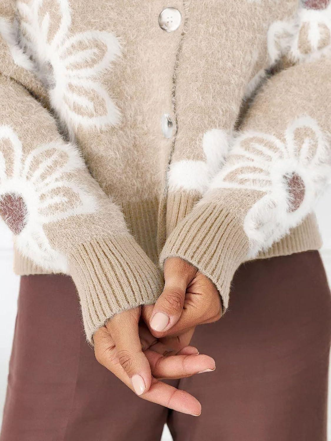 Women V Neck Floral Furry Crop Cardigan Knitted Button Down Cashmere Sweater Fall Outfits Loose fit faux mink jacquard flower sweater ribbed cute tops/ Casual fuzzy short open front cardigan sweaters for women trendy Fall winter cardigan sweaters for women fashion clothes Womens chic floral print crop sweater Fuzzy flower cropped cardigan fluffy long sleeve knitted sweater v neck open front cardigans fall outwears button up furry short cashmere sweater western casual oversized floral mink cardigan trendy going out outfits winter coat