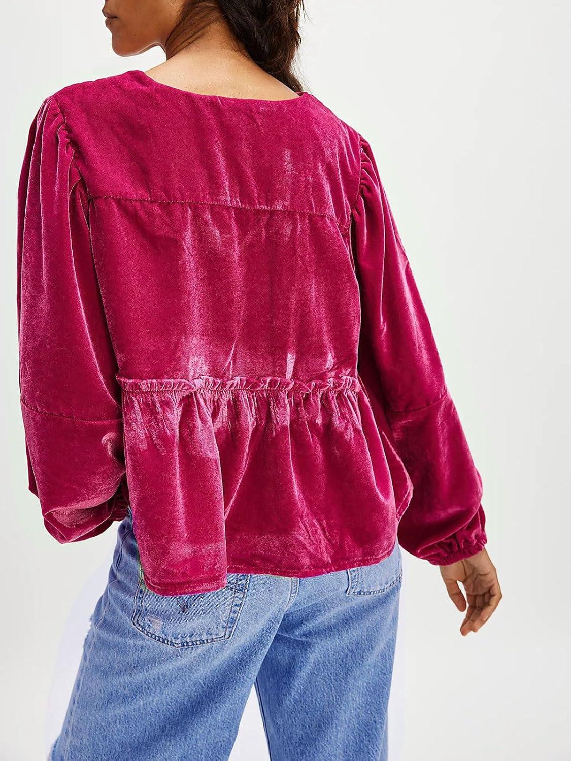Be the first to review “CHARTOU Women Velvet Shirt Tops Cute Bow Tie Front Puff Long Sleeve Blouse Ruffle Lapel Cut Out Fall Outfits(Rose)”