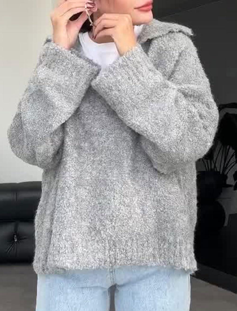 CHARTOU Women Warm Fuzzy Knit Sweater Polo Collar Oversized Pullover Sweater Tops(Grey)
