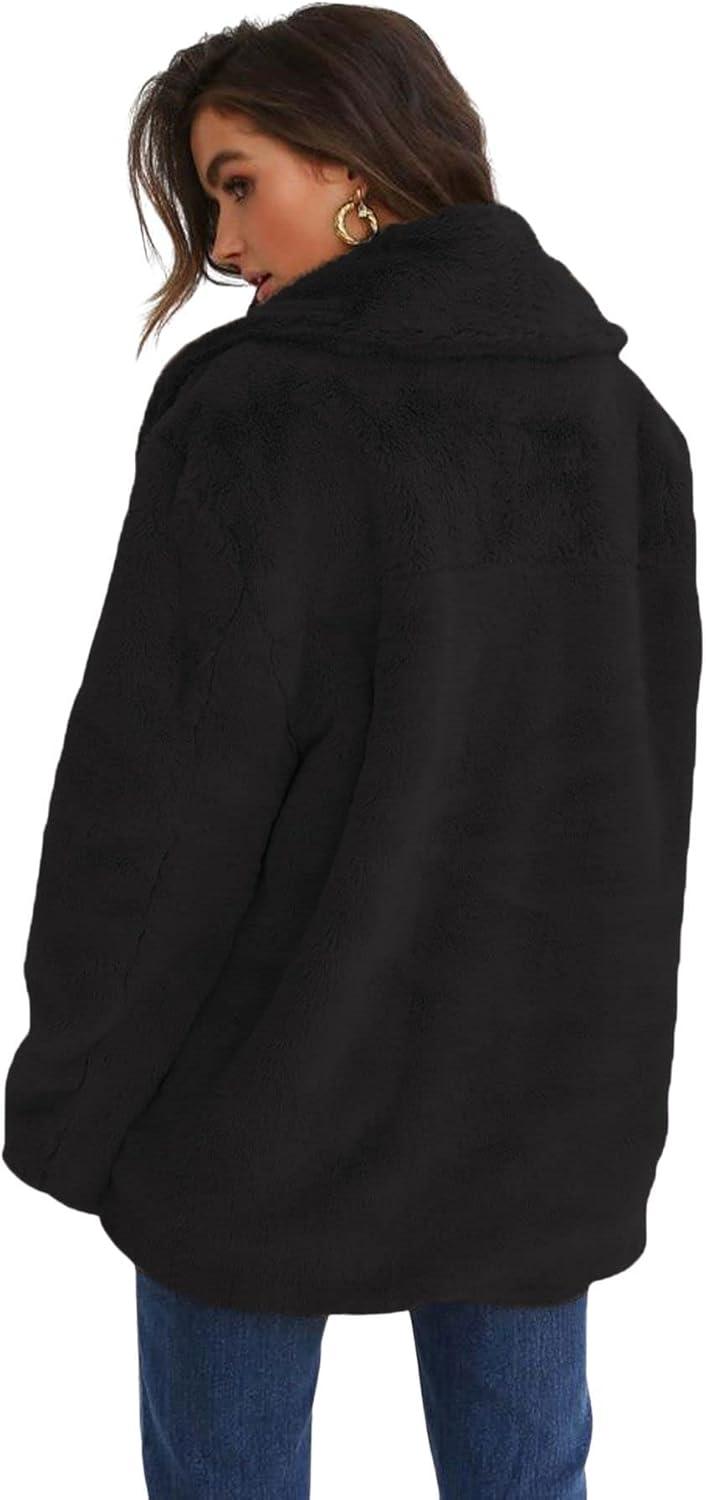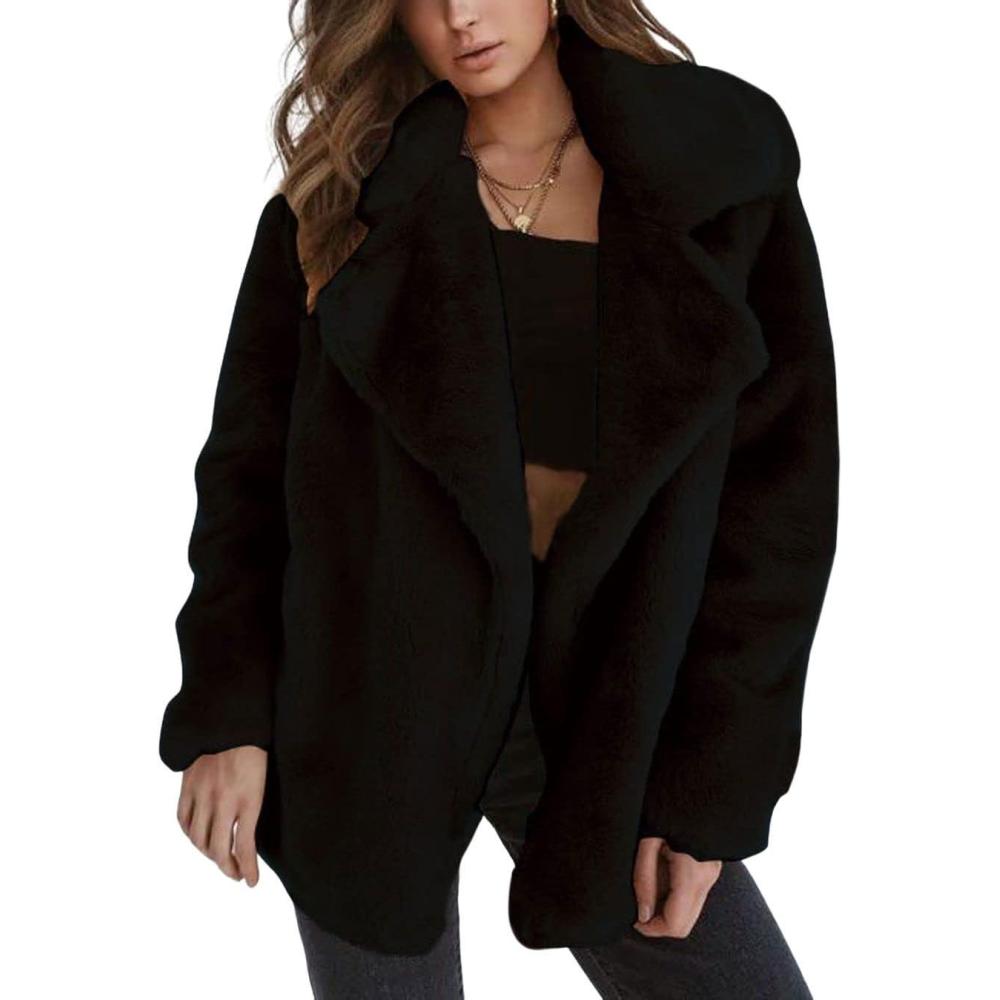 CHARTOU Women Winter Faux Fur Coat Fuzzy Sherpa Fleece Jacket Open Front Teddy Bear Coat Overcoat(Black)