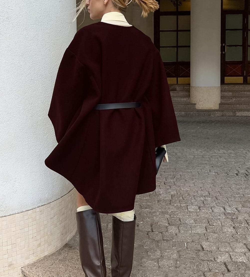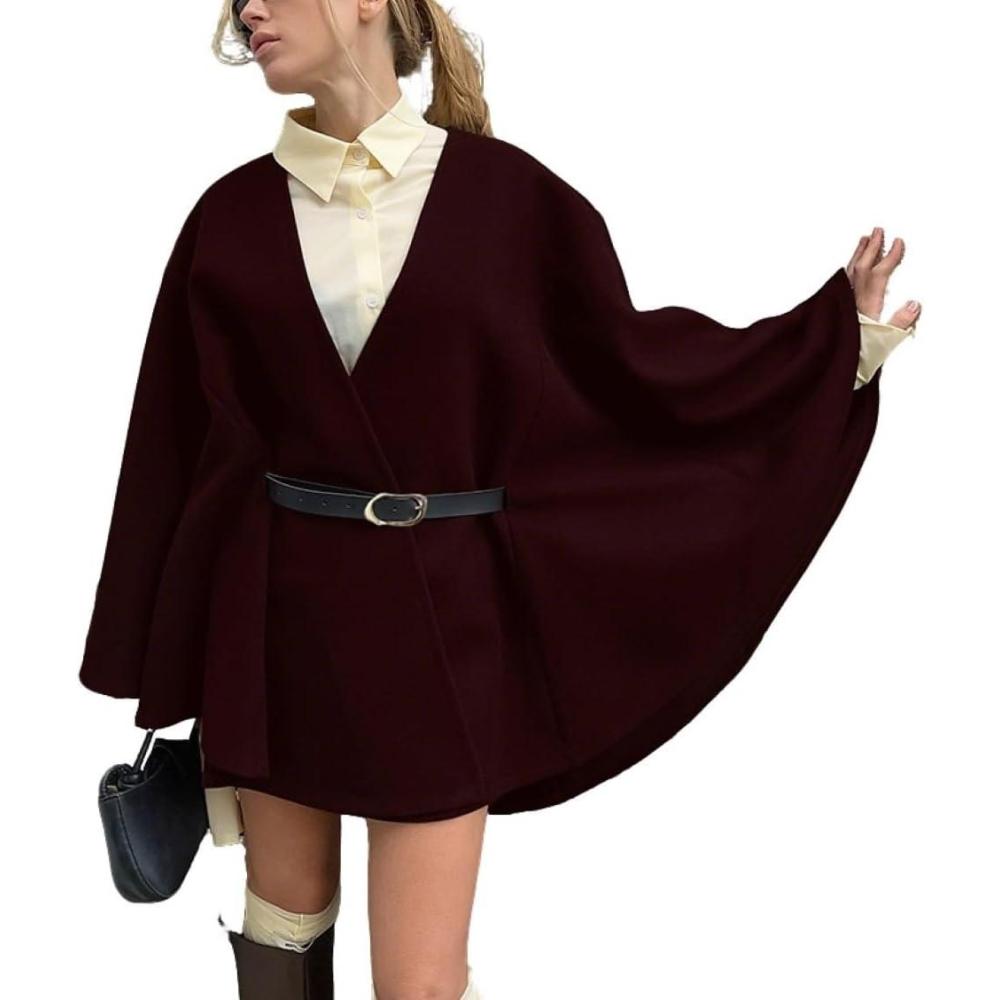 Be the first to review “CHARTOU Women Winter Wool Poncho Pea Coat V Neck Batwing Sleeve Cape Cloak Trench Overcoat with Belt(Wine Red)”