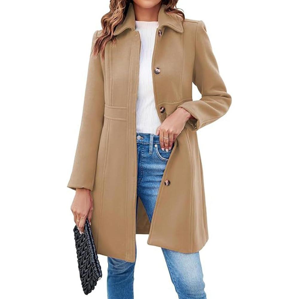 CHARTOU Women Wool Blend Pea Coat Jacket Winter Single Breasted Woolen Turndown Trench Coat Peacoat Overcoat Button down wool coat for women trench coat pea coat 【SELLING POINTS for WOOLEN JACKET】—– Regular slim fit/ Turndown lapel/ Long sleeves/ Mid long wool jacket/ Single breasted/ Thick and warm woolen jacket 【VERSATILE WOOL JACKET】—- Weekend long winter coats for women trench coat, daily wear peacoat womens coat trenchcoat, streetwear wool coats for women woolen jacket, outdoor mid long pea coat wool blend jacket, holiday vacation thicken warm peacoat pea coat, night club button down wool jacket long coat 【SOLID COLOR for PEA COAT】—- Black jacket women, brown pea coat, camel woolen coat, grey jacket outwear, rosy jacket, beige wool coat 【Size Guide for PEACOAT】—-S=US 4-6, M=US 8-10, L=US 12-14, XL=US 16-18. Please refer to the body measurements on photo gallery before purchase Women Winter Wool Blend Camel Mid-Long Coat Notch Double-Breasted Jacket Outwear Women's Fashion Faux Fur Lapel single breasted Thick Wool Trench Coat Winter Warm Jacket Women Elegant Notched Collar single breasted Wool Blend Over Coat