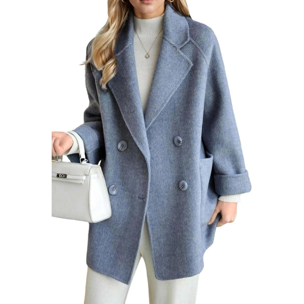 CHARTOU Women Wool Coat Peacoat Jacket Thick Loose Double Breasted Pea Coat Woolen Winter Overcoat(Blue)