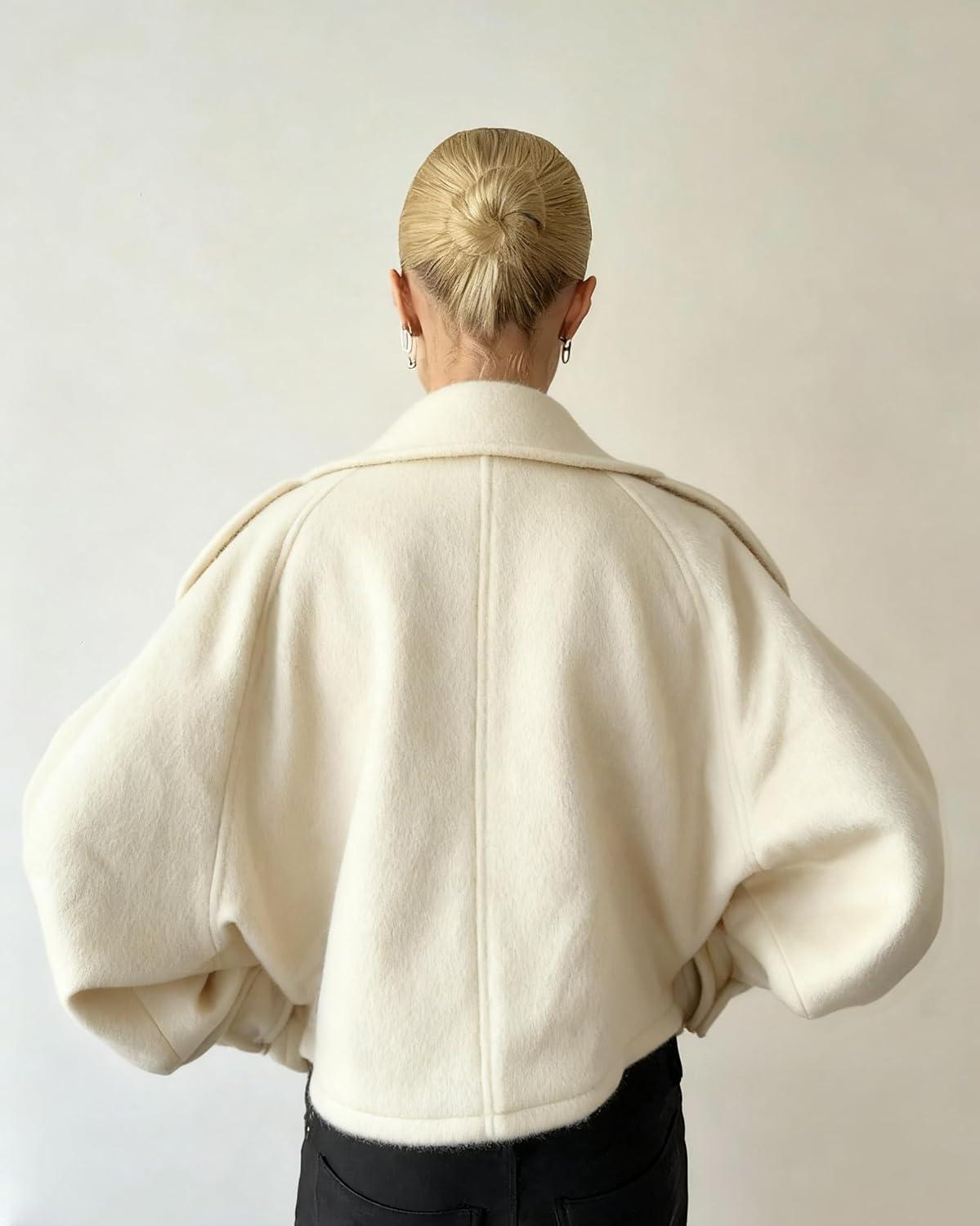 CHARTOU Women Wool Pea Coat/ Band Collared Cropped Outwear Coat/ Batwing Long Sleeve Short Overcoat/ Zip Up Trench Overcoat/ Women Trendy 2025 Fall Winter Outfits