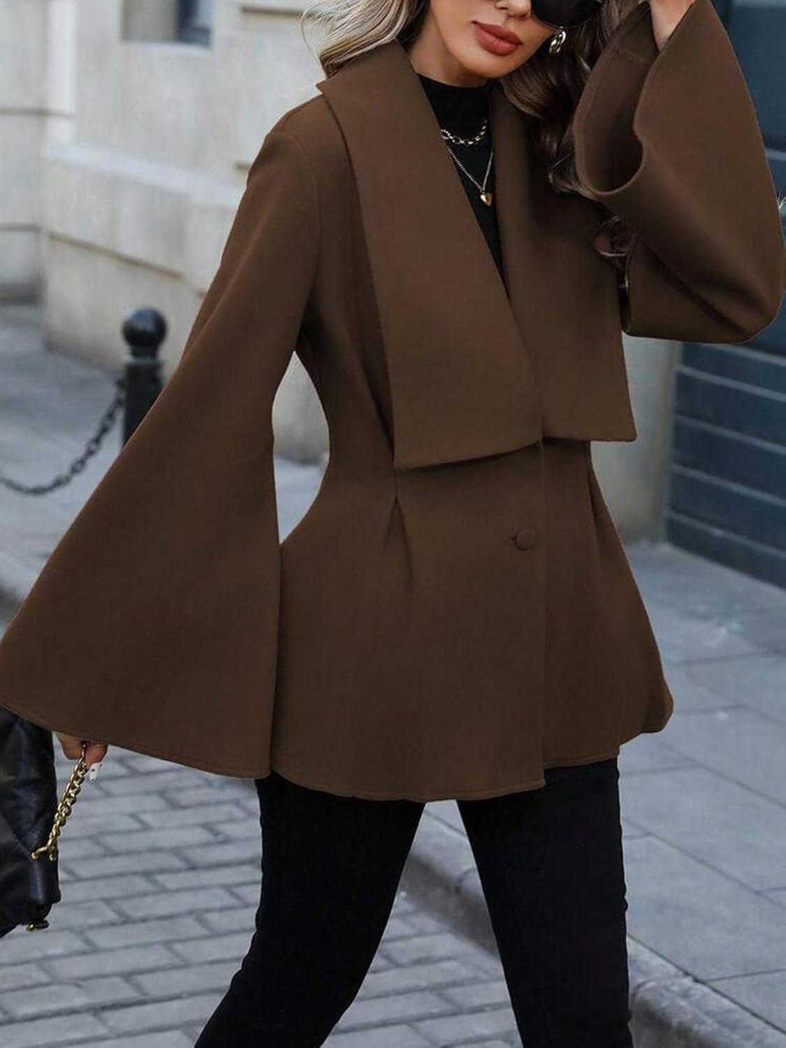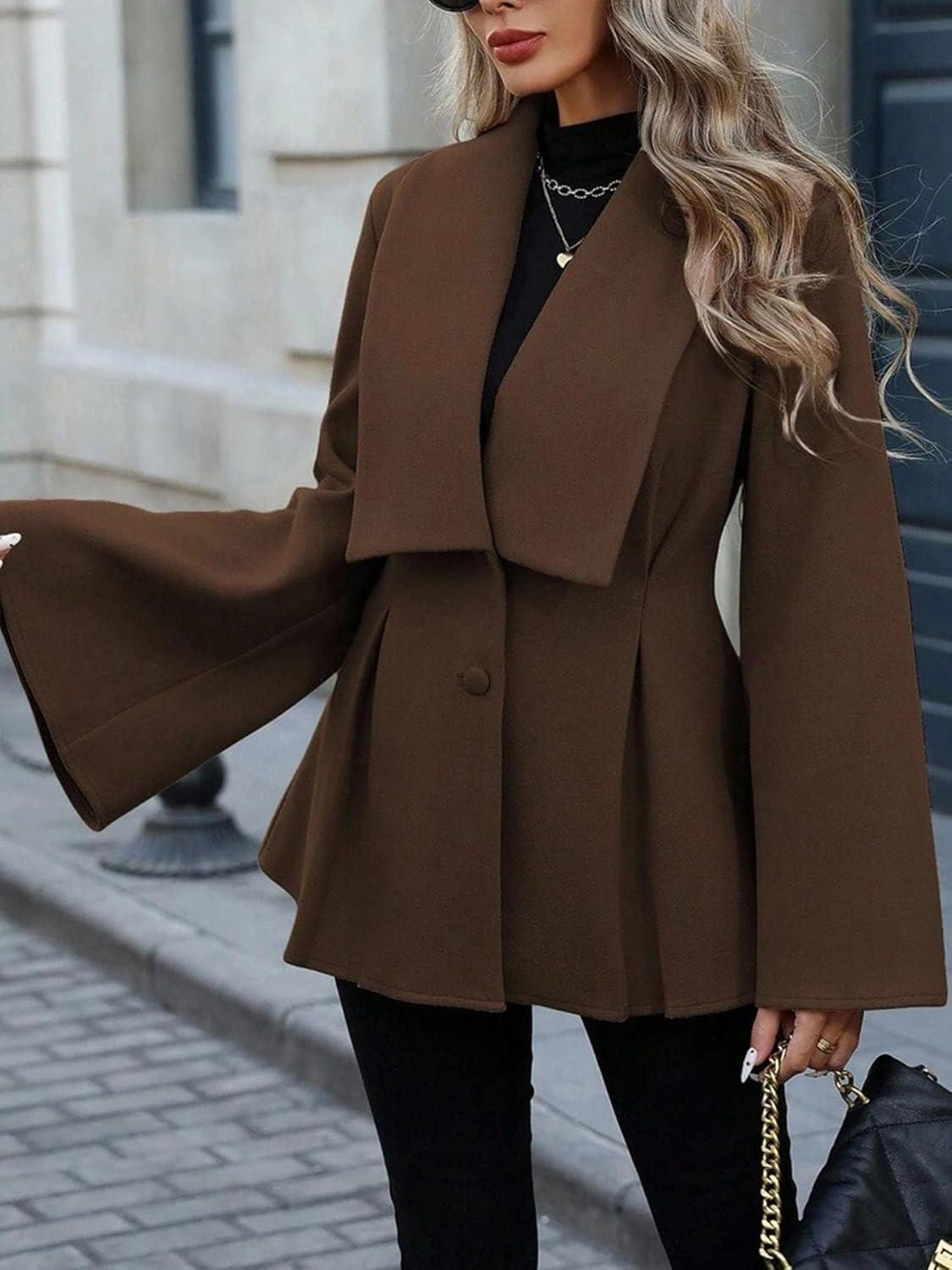 CHARTOU Women Wool Pea Coat Jacket Fall Winter Lapel Flared Long Sleeve Pleated Outwear Trench Overcoat(Dark Brown)