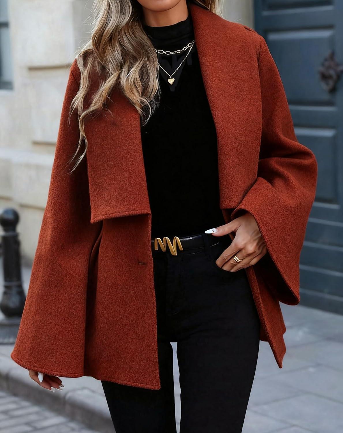 CHARTOU Women Wool Pea Coat Jacket/ Fall Winter Warm Thicken Trench Overcoat/ Flared Long Sleeve Outwear Coat/ Half button Casual Jacket/ Women Trendy 2025 Fall Winter Vacation Outfits
