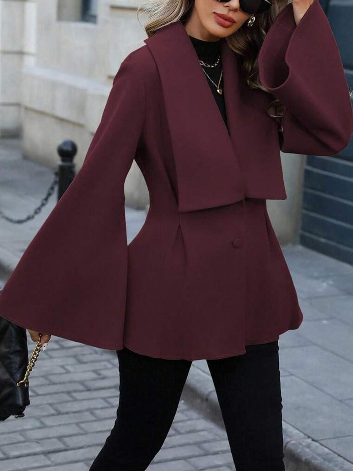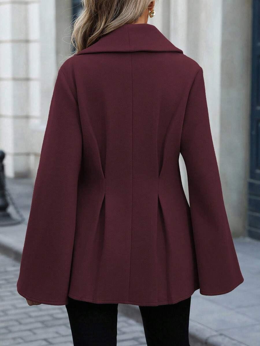 CHARTOU Women Wool Pea Coat Jacket Fall Winter Lapel Flared Long Sleeve Pleated Outwear Trench Overcoat(Wine Red)