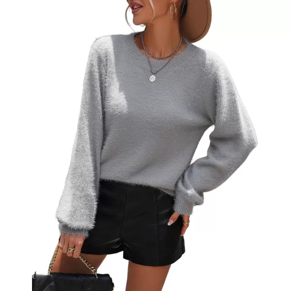 CHARTOU Women’s 2023 Trendy Sexy Back Cut Out Lace Applique Fluffy Knit Pullover Sweater Tops(Grey)