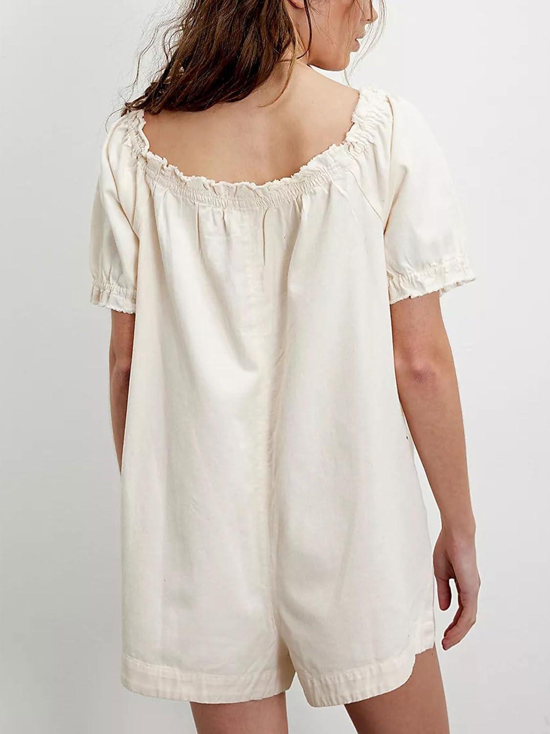 Be the first to review “CHARTOU Women’s Babydoll Denim Romper Jumpsuits Short Puff Sleeve Drawstring Jean Overalls Shorts(White)”