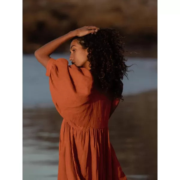 CHARTOU Women’s Babydoll Dress V-Neck Elbow Sleeve Flared A-Line Loose Tunic Dress(Orange Red)