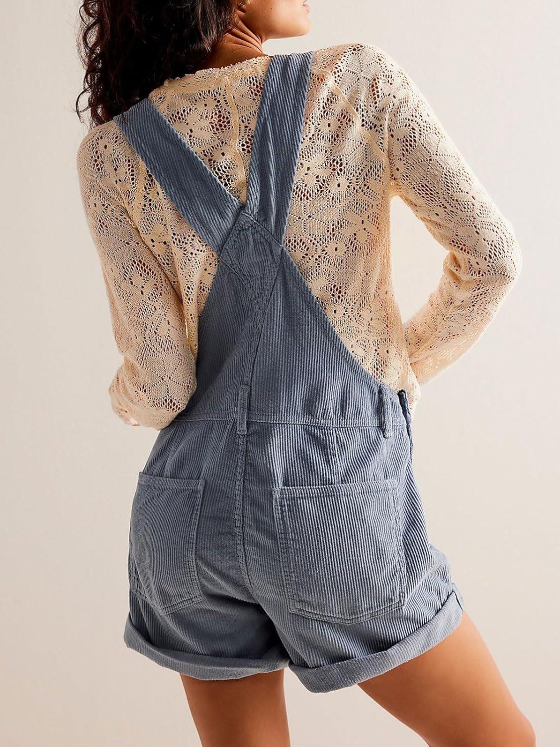 CHARTOU Women’s Bib Corduroy Overalls Shorts Jumpsuit Adjustable Strap Romper Roll Up Shortalls with Pockets(Blue)