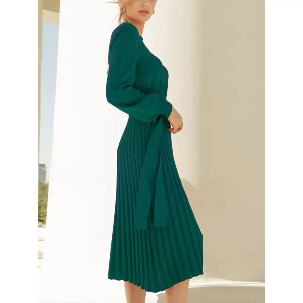 CHARTOU Women’s Boatneck Lantern Sleeve Pullover Sweater Pencil Pleated Bodycon Midi Dress(Blackish Green)