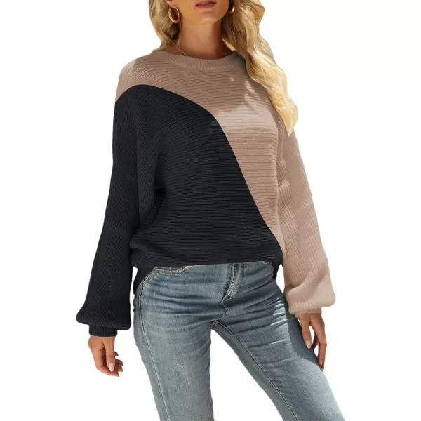 CHARTOU Women’s Loose Fit Crew Neck Batwing Sleeve Color Block Knit Sweater Jumper Top(Black02)